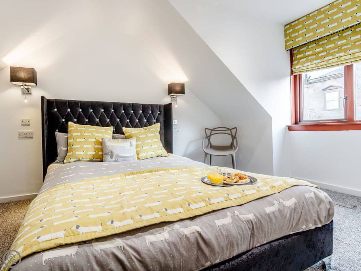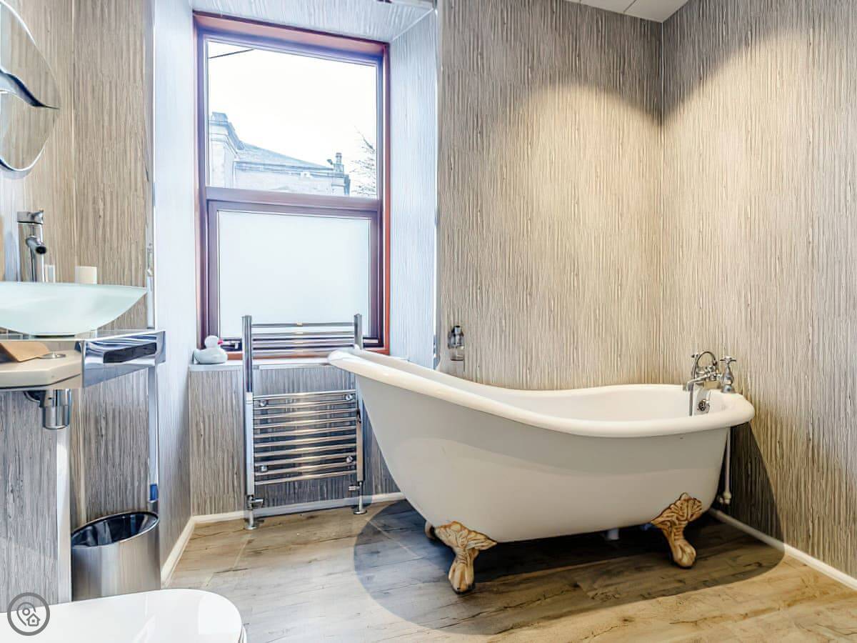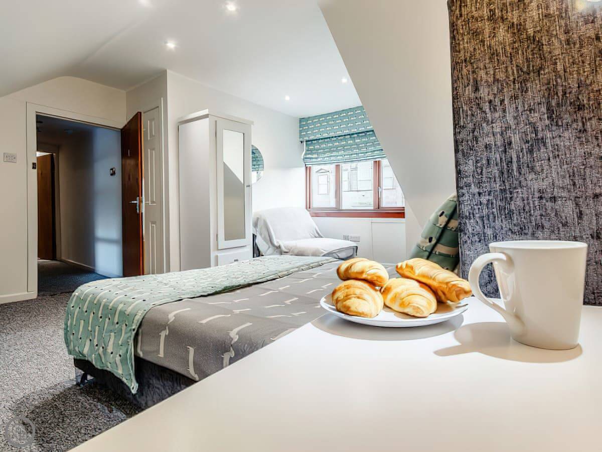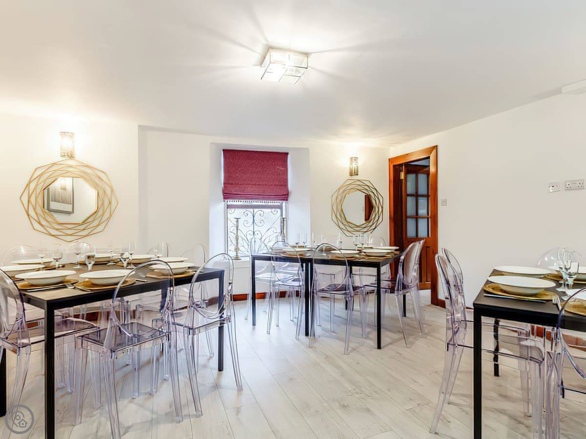 The Golden Crown is a big house in Tarbolton village. It's semi-detached. It sleeps twenty-six people, mostly in seven bedrooms. There are four bathrooms. It's got a 4 Star rating.