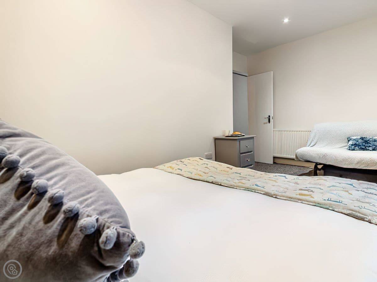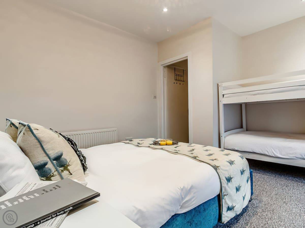 In terms of what's there: all the bedding and towels are included. There's a washing machine, dishwasher, WiFi, and a cot and highchair. The garden is enclosed. There's parking and bike storage. No pets, sorry.
