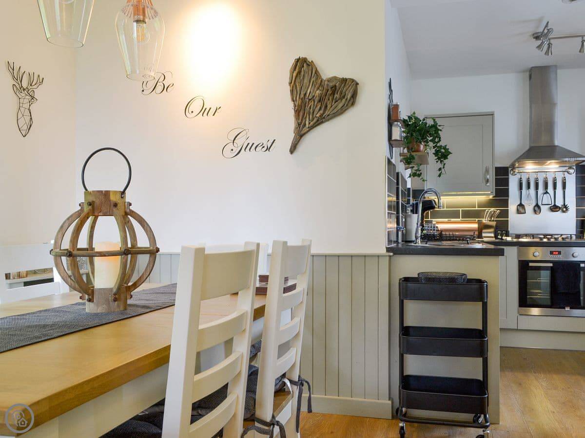 Upon entering the wonderful Gardeners Cottage you are drawn into the fabulous living room with its huge wood burner. The interior design and decoration is immediately impressive and exactly what you want from a holiday home. The living room is open plan with the dining room and beautiful modern kitchen. There are doors off of the dining room and from the kitchen into the garden.