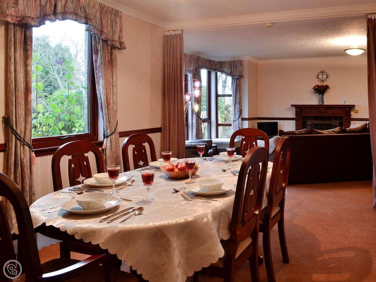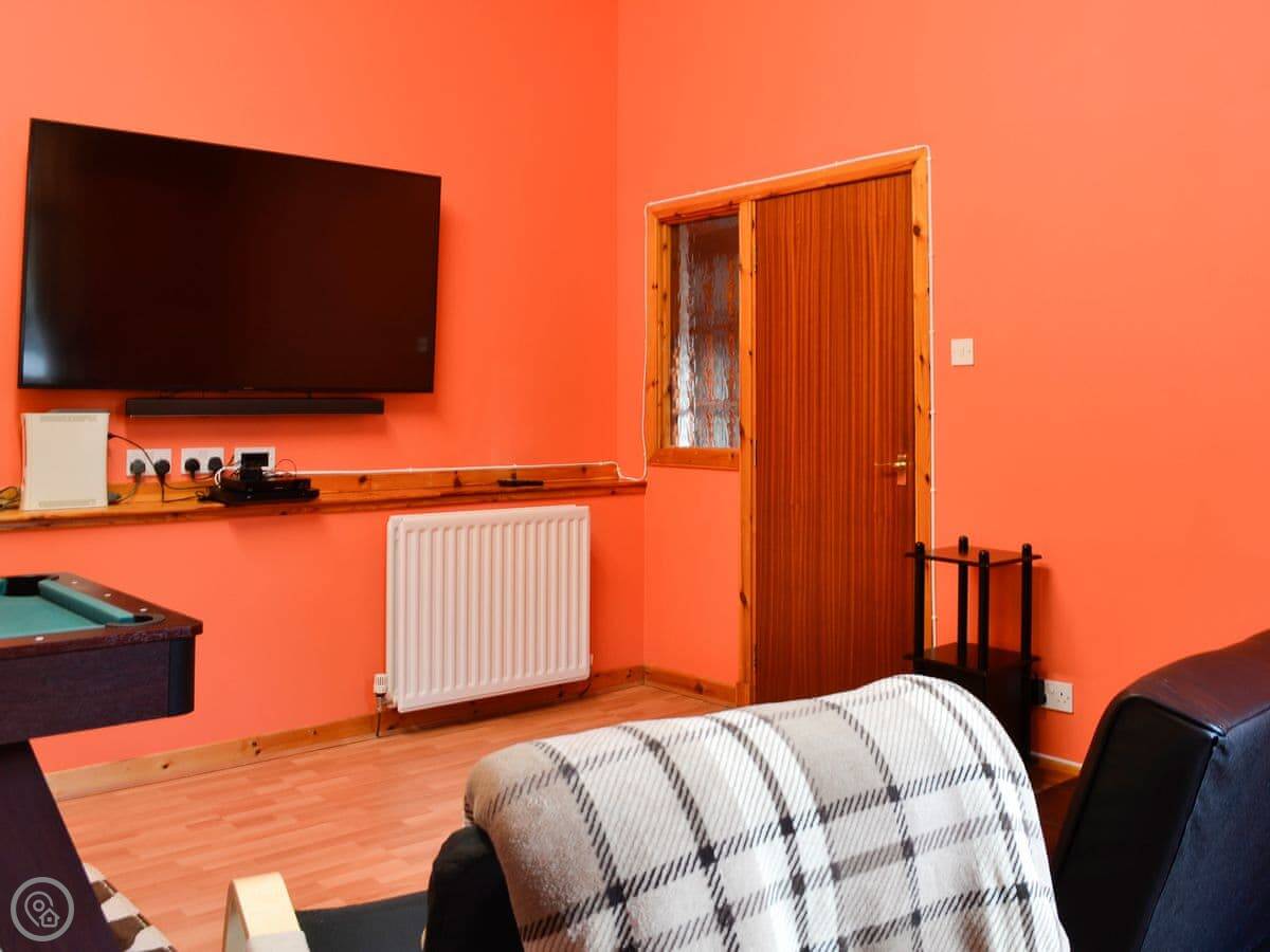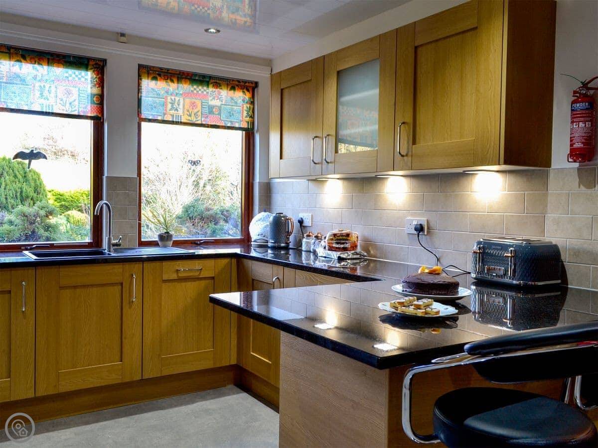 Inside, there's a living room that looks out over the garden. There's a TV, WiFi, a washing machine. Bedding and towels are included. We've also got a cot and a highchair if you need them. Parking is on the drive.