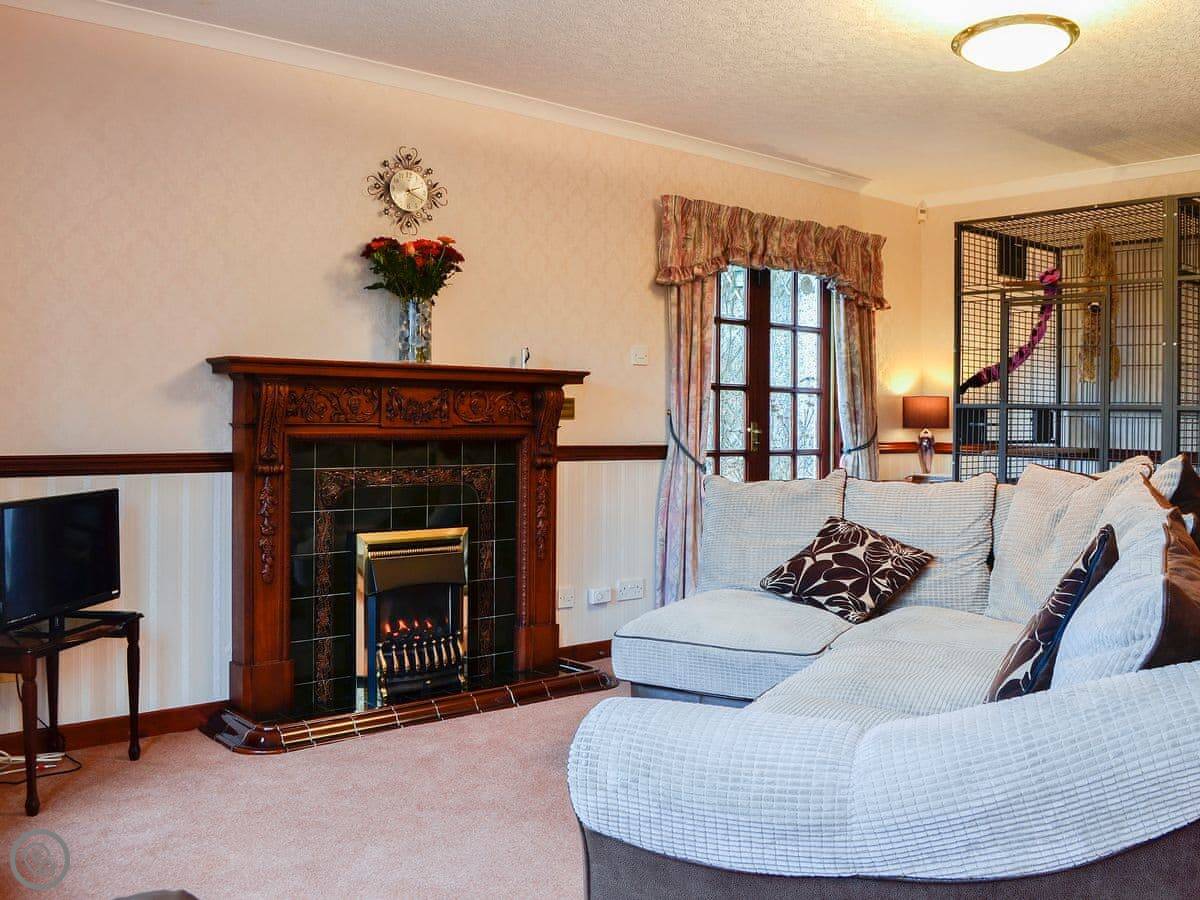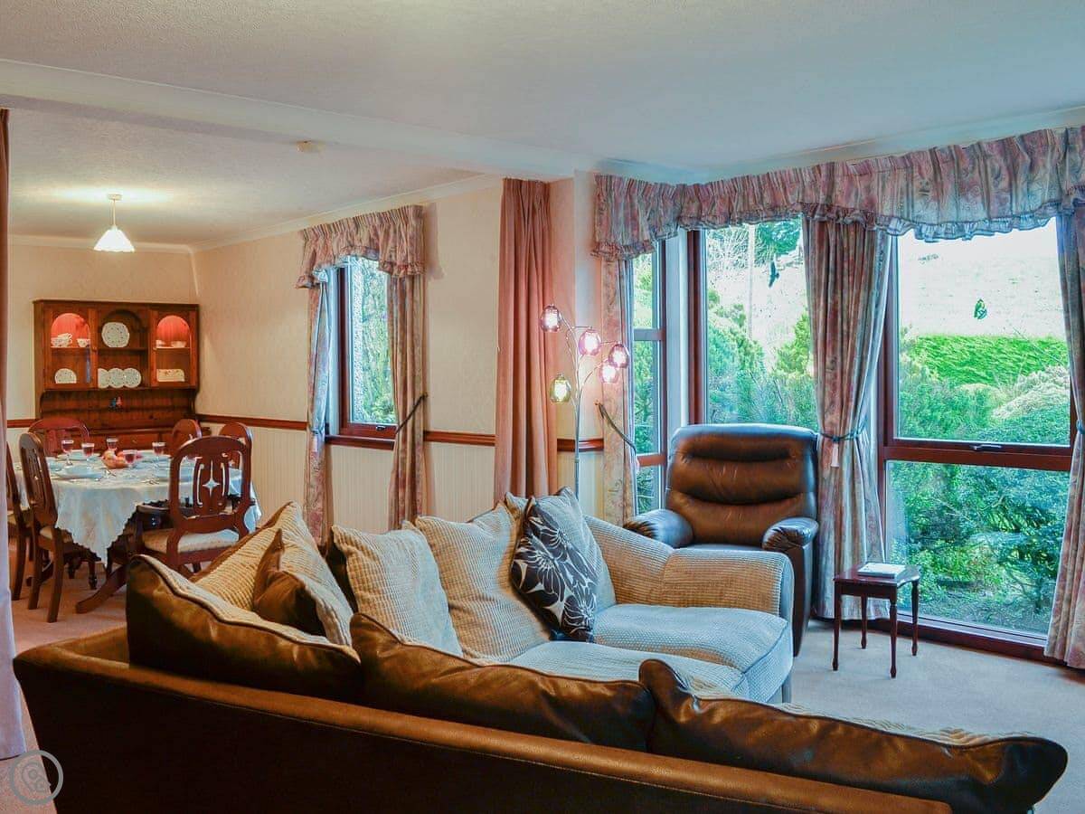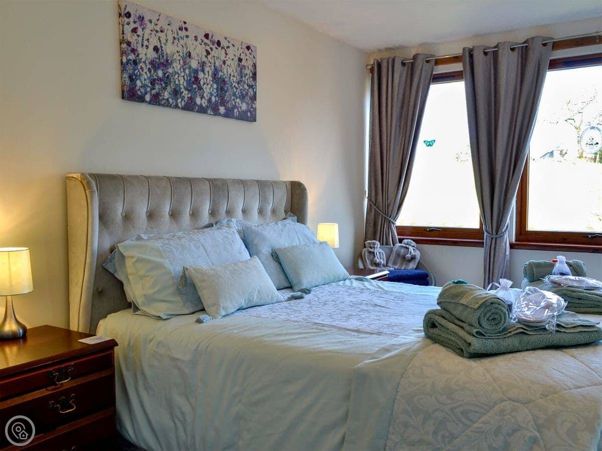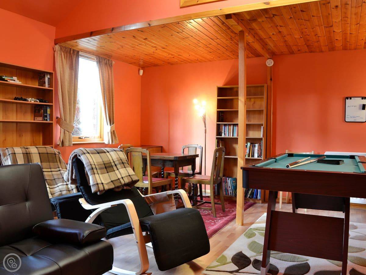 Inside, there's a living room that looks out over the garden. There's a TV, WiFi, a washing machine. Bedding and towels are included. We've also got a cot and a highchair if you need them. Parking is on the drive.