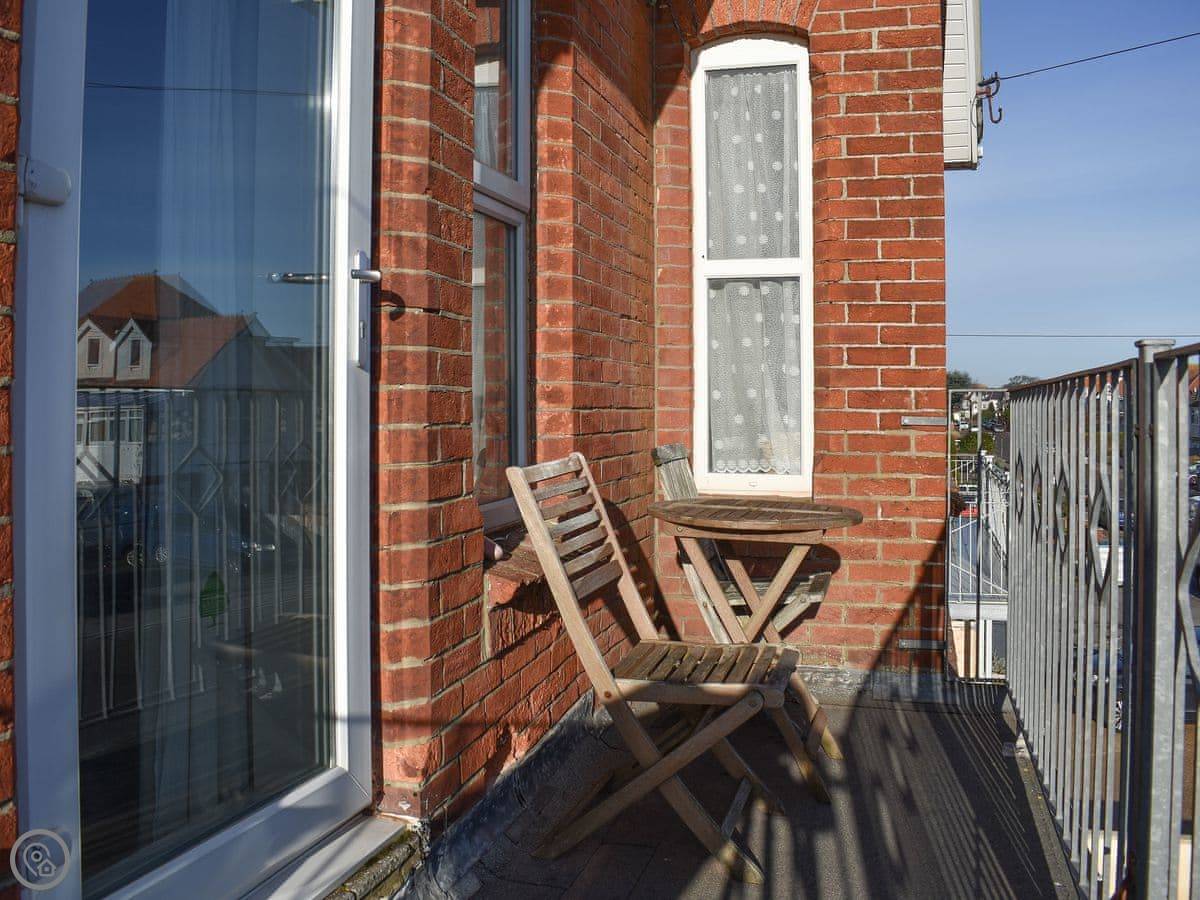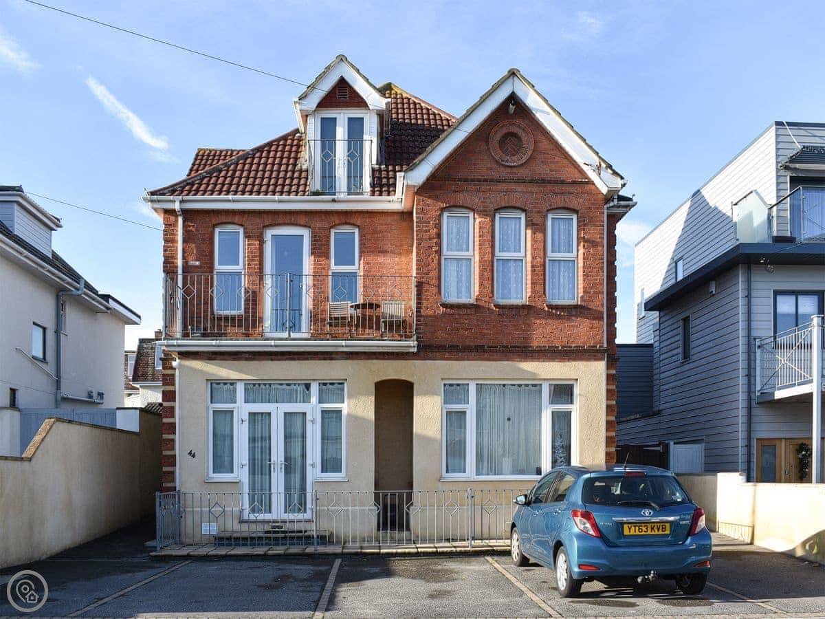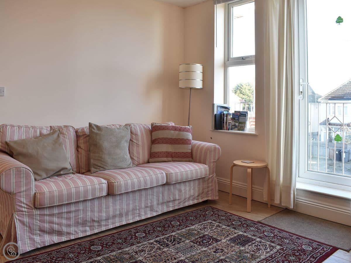 This apartment is 50 yards from the cliff top and the Blue Flag sandy beach . Set on the first floor the open plan living room/kitchen has a balcony with distant sea views. The holiday apartment offers comfortable accommodation and is in an ideal area for exploring. Enjoy Bournemouth town centre with town garden, shops, restaurants and pubs. The New Forest National Park is just a short drive away with pretty villages and free roaming cattle and ponies. Christchurch is close by with its market, walks along the river or a river cruise and Mudeford popular for crabbing on the quayside. Shop ½ mile, pub 600 yards.
