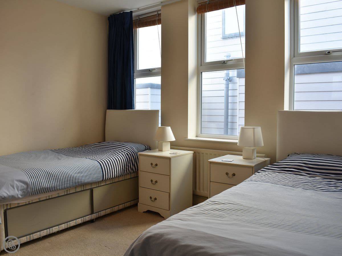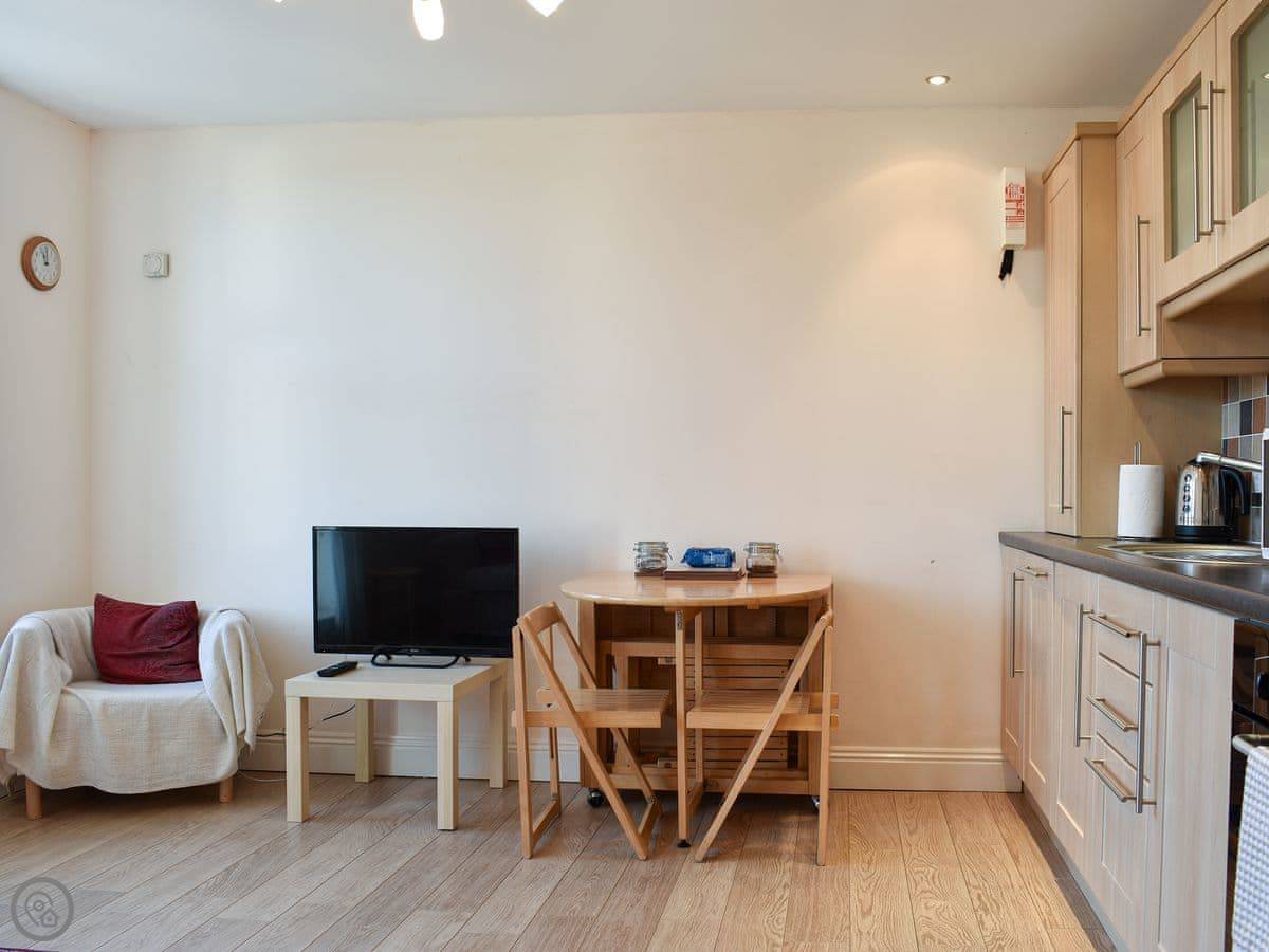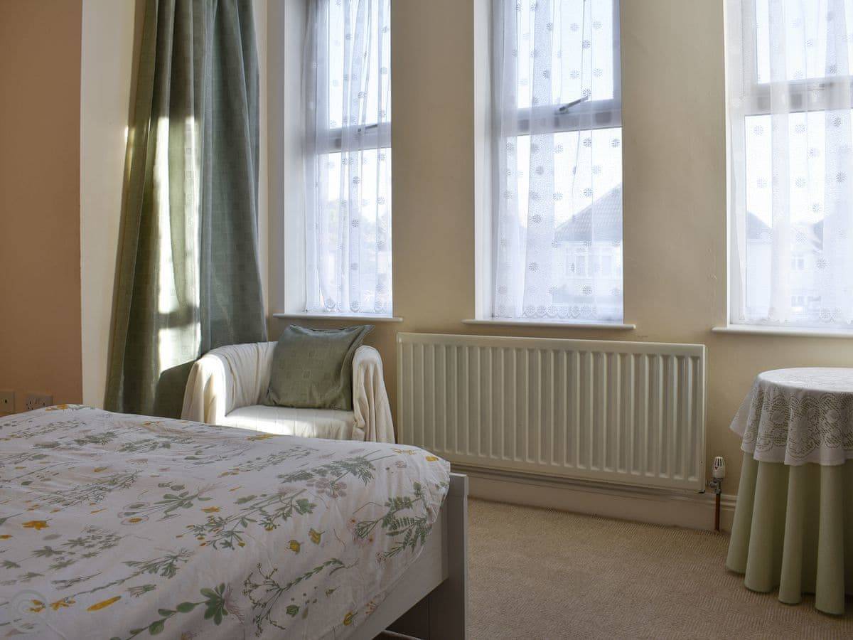 This apartment is 50 yards from the cliff top and the Blue Flag sandy beach . Set on the first floor the open plan living room/kitchen has a balcony with distant sea views. The holiday apartment offers comfortable accommodation and is in an ideal area for exploring. Enjoy Bournemouth town centre with town garden, shops, restaurants and pubs. The New Forest National Park is just a short drive away with pretty villages and free roaming cattle and ponies. Christchurch is close by with its market, walks along the river or a river cruise and Mudeford popular for crabbing on the quayside. Shop ½ mile, pub 600 yards.