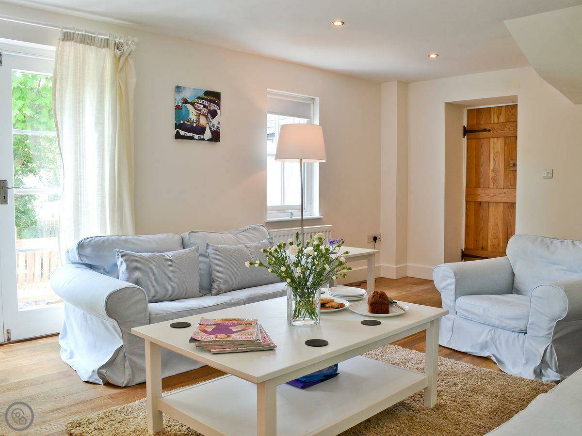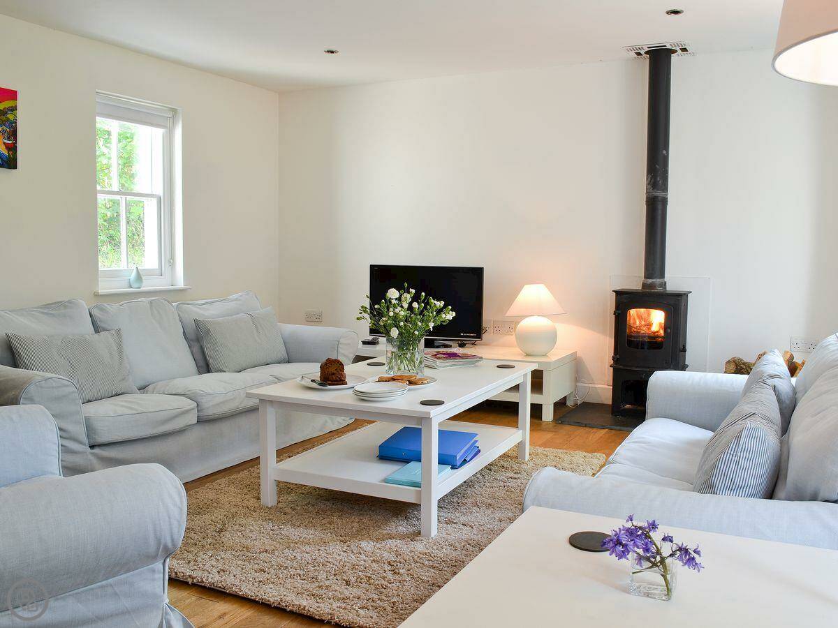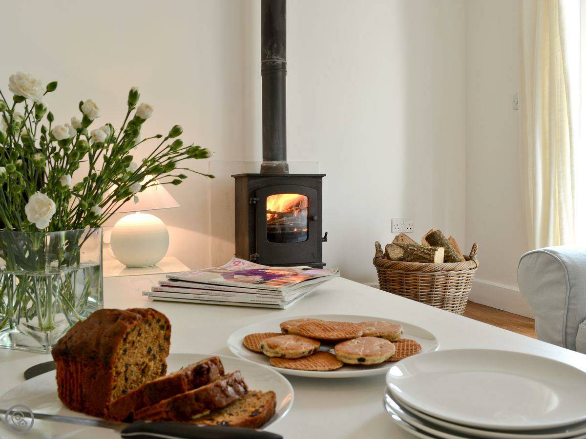 It sleeps six people. There are three bedrooms and two bathrooms. It's got a 4 Star rating. The garden is enclosed. You can get out to it from the living room through French doors. There's a wood burner for cooler evenings.