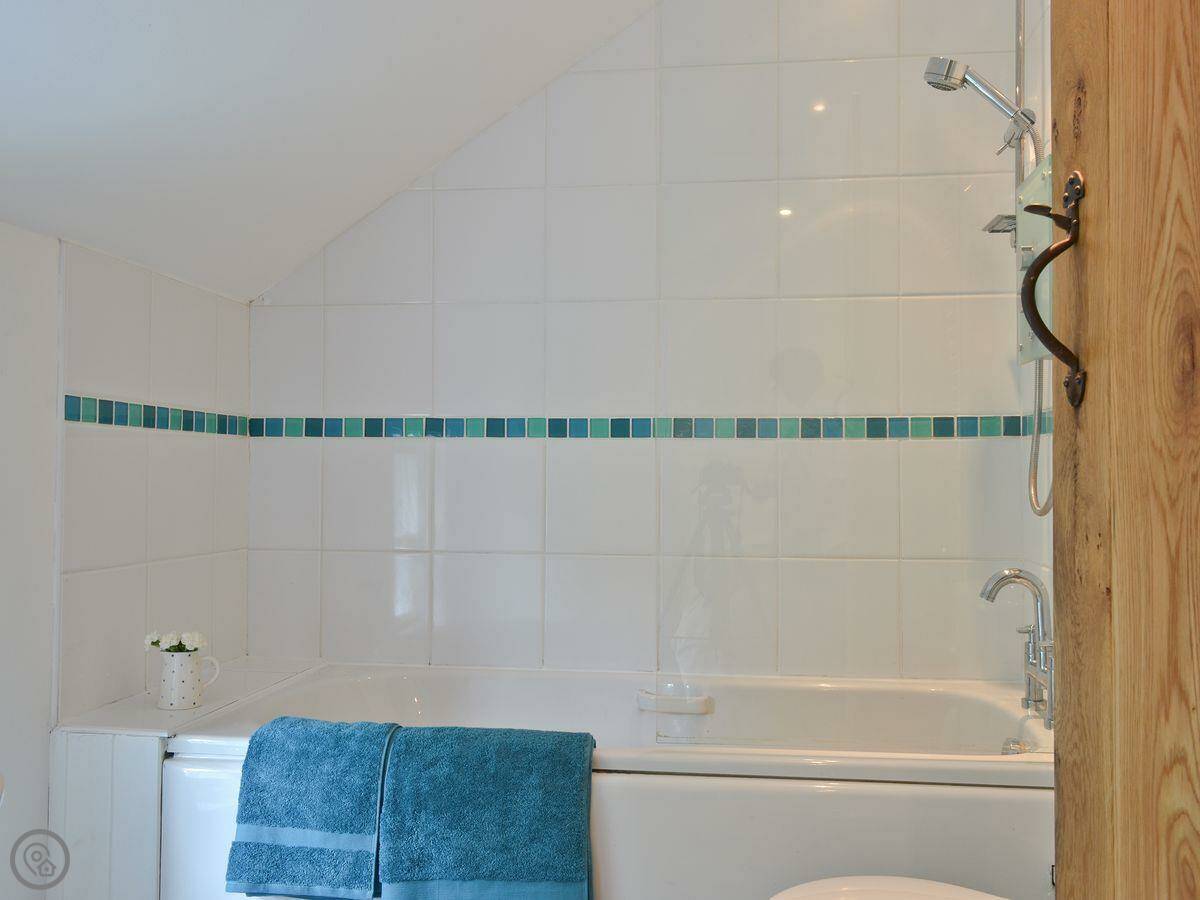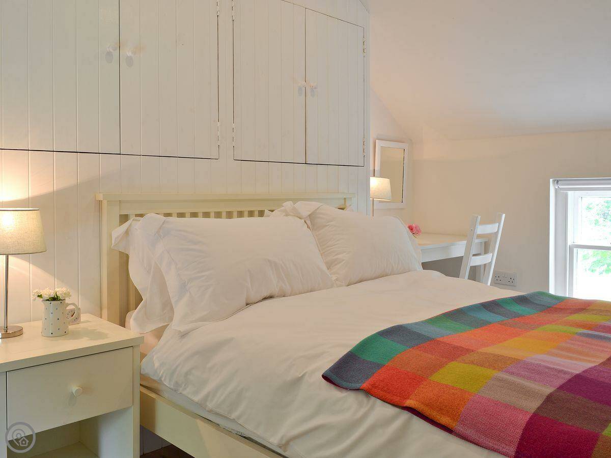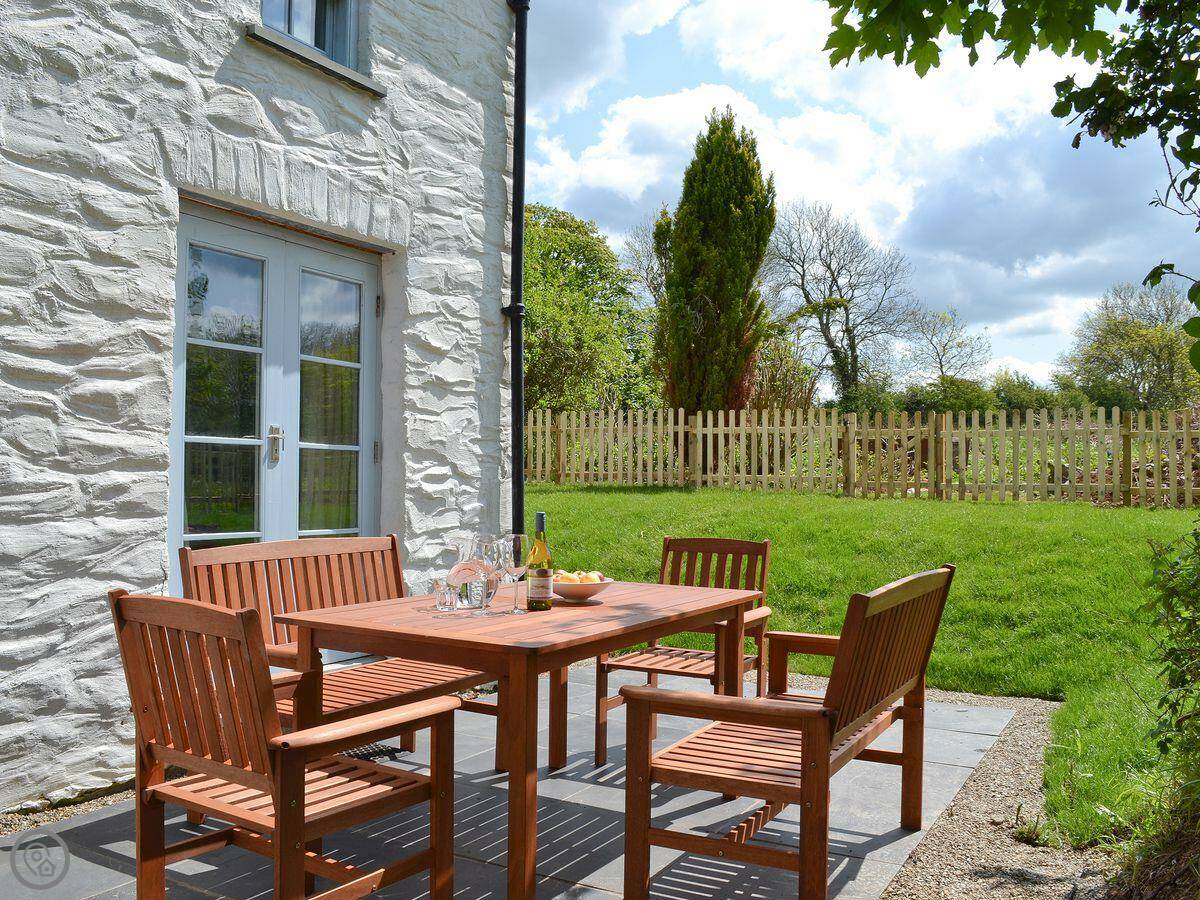 It sleeps six people. There are three bedrooms and two bathrooms. It's got a 4 Star rating. The garden is enclosed. You can get out to it from the living room through French doors. There's a wood burner for cooler evenings.