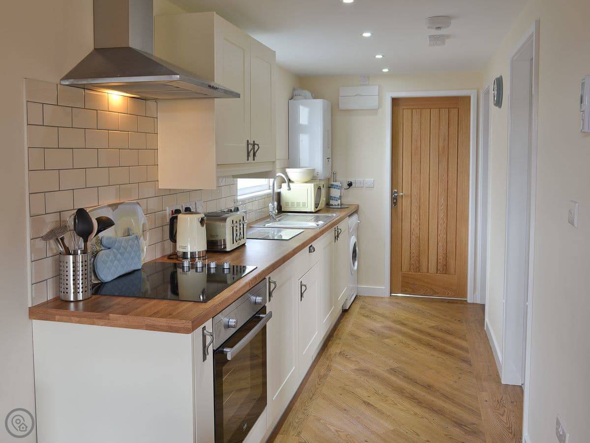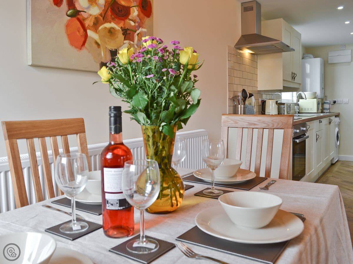 There's an enclosed garden with a patio. It gets the sun in the afternoon. Inside it's open plan, with a kitchen, dining area and sitting area together. It's got the basics: TV, WiFi, washing machine. Bedding and towels are included. We can provide a cot and highchair.