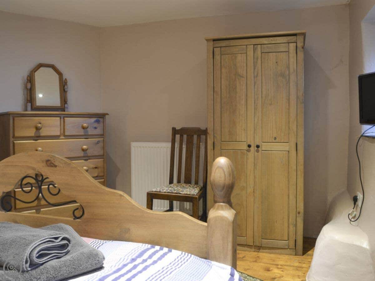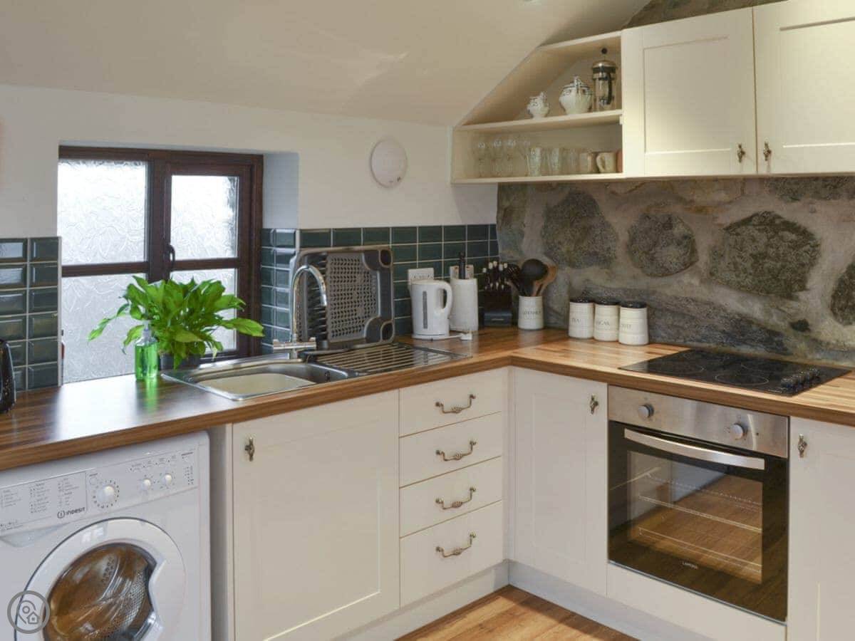 Inside, it's open plan. There's a TV, WiFi, a washing machine, and heating is included. We provide bedding and towels. Outside there's a patio with a BBQ, and parking for two cars.