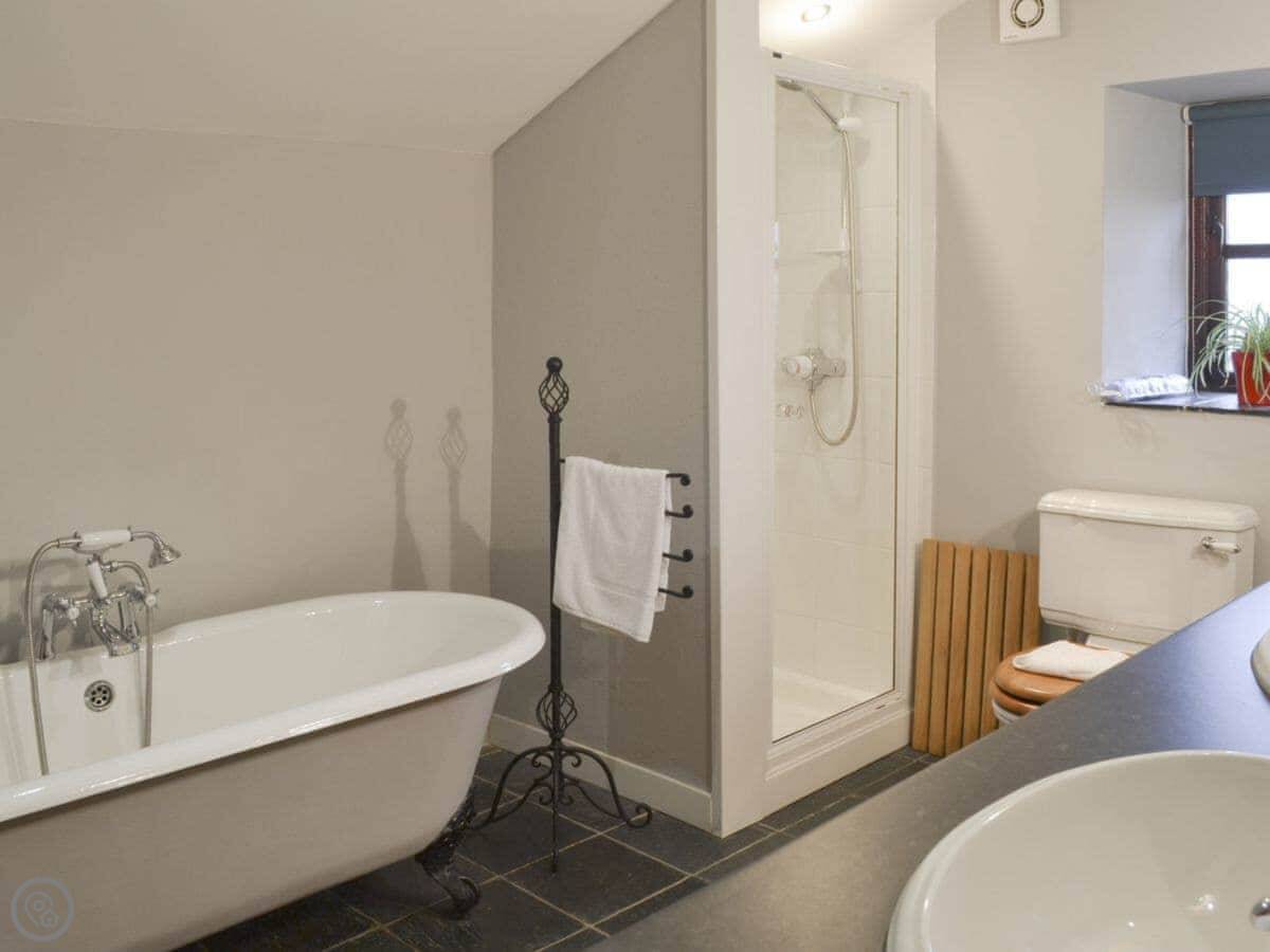 You reach us down a farm track. It's fine for normal cars, just a bit bumpy in places. The track is shared with us and the other holiday lets. We have sheep in the fields and two donkeys. They're friendly and might come over.