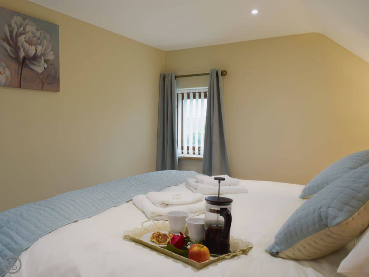 For facilities: it's got a dishwasher, washing machine, wifi, TV. Bedding and towels are included. There's parking right outside. We can provide a cot and highchair if you need them. It's a working farm, so you'll see sheep and maybe some machinery going about.