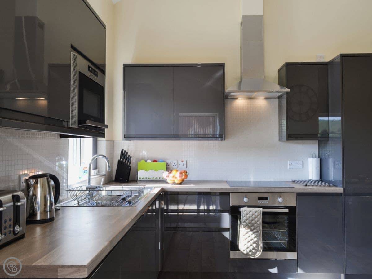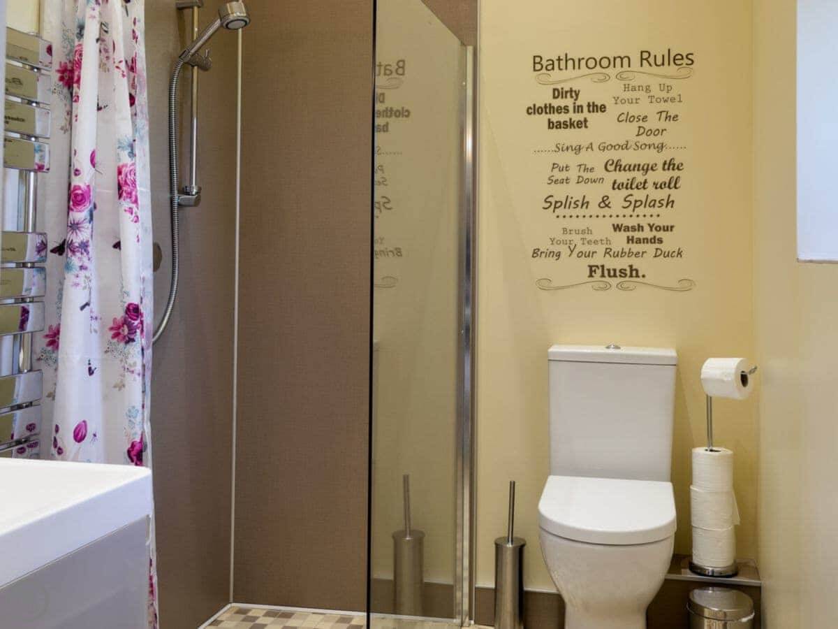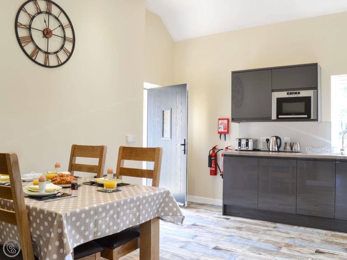 It's a one-bedroom place for two people. We converted it from an old cow shed, so there's some exposed stonework inside. Everything's on one level, which makes it easy. The kitchen is new and the wet room is a good standard. It's got a 4 Star rating.
