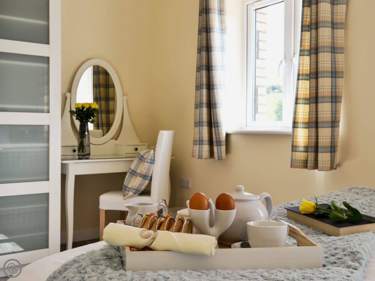You have your own enclosed courtyard outside the front door. It's a proper suntrap in good weather. We have sheep in the fields around and some chickens, so we ask that dogs are kept on a lead when they're outside the courtyard. Just so everyone gets on.