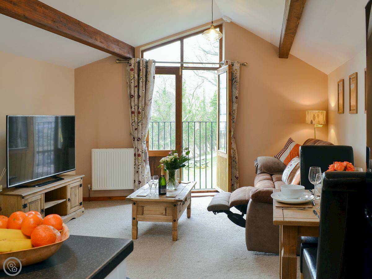 Y Bwythn Pren, meaning wooden or timber cottage, is a delightful ‘upside down’ house set in the colourful Georgian harbour town of Aberaeron. Standing detached, the cottage is half timbered and arranged with the bedroom and bathroom on the ground floor. A quaint, spiral staircase takes you up to the first floor open-plan living space which takes advantage of the lovely view over the River Aeron. Open the doors to the Juliet balcony and listen to the sound of the water flowing down to the harbour and out to sea. Outside is a little courtyard where you can sit and there’s a bike store available and room to store canoes too as there is direct access to the river in front of the property. No doubt you will want to enjoy the delights of Aberaeron itself, which lies just a stone’s throw from this peaceful spot. Colourful buildings sit around the harbour, constructed in 1807, where boats bob about. There is an array of pubs, restaurants and cafés to suit all tastes and budgets, and a good variety of independent shops, many of which sell local produce and chic seaside gifts. The town is awash with festivals and unique events throughout the summer, so you can leave the car behind and enjoy the delights on offer such as a seafood festival, a cider and beer festival, a festival celebrating Welsh ponies and cobs, a mackerel festival, a carnival and more. In the winter, Aberaeron takes on a more sedate air, but you will find everything open for business and the pubs less crowded!