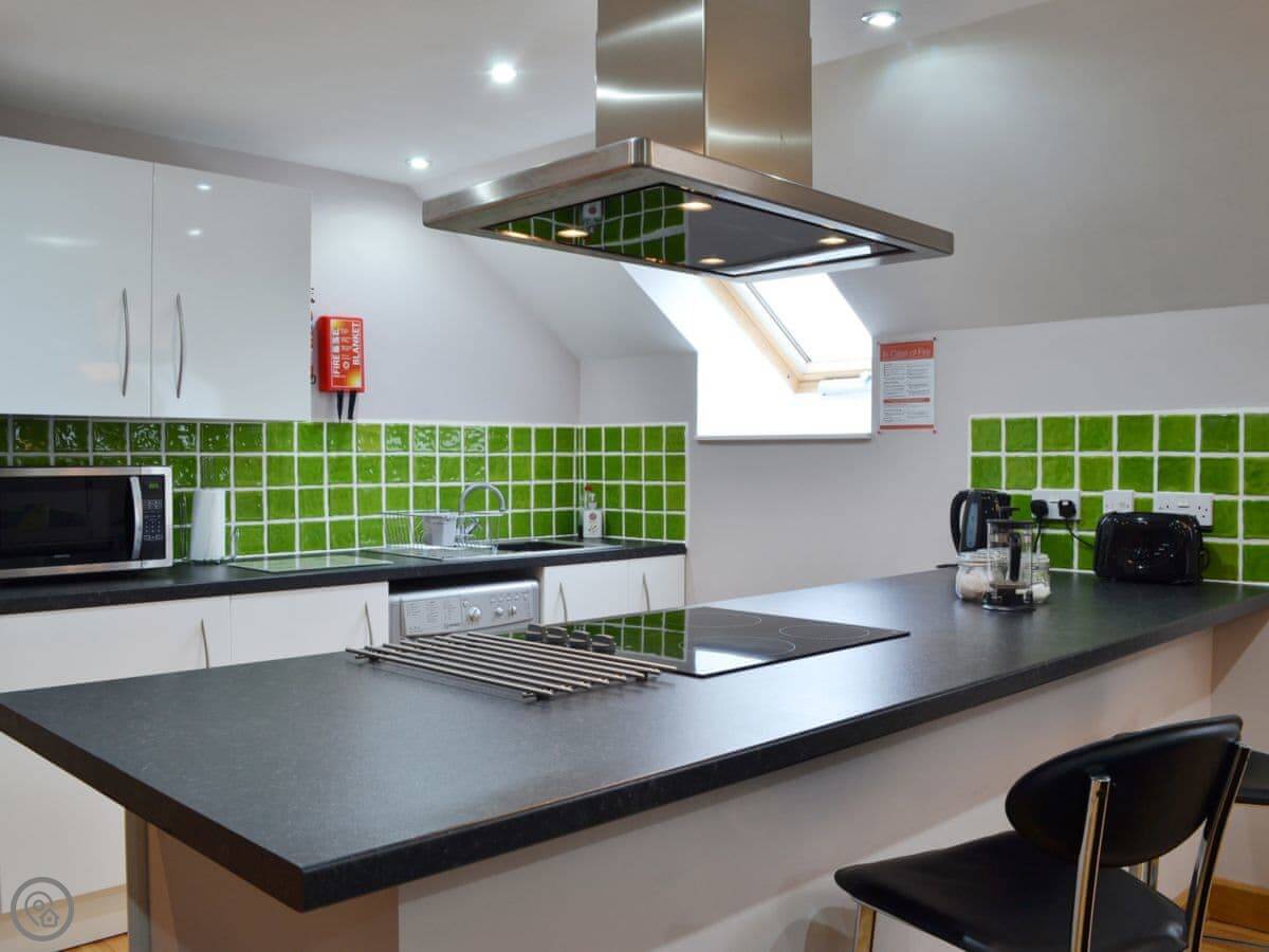 It sleeps two, one bedroom and one bathroom. It has a 4 Star rating. It's all open plan downstairs, kitchen, sitting area, that sort of thing. The stairs up to the bedroom are a proper ladder staircase. It's fine if you're steady on your feet.
