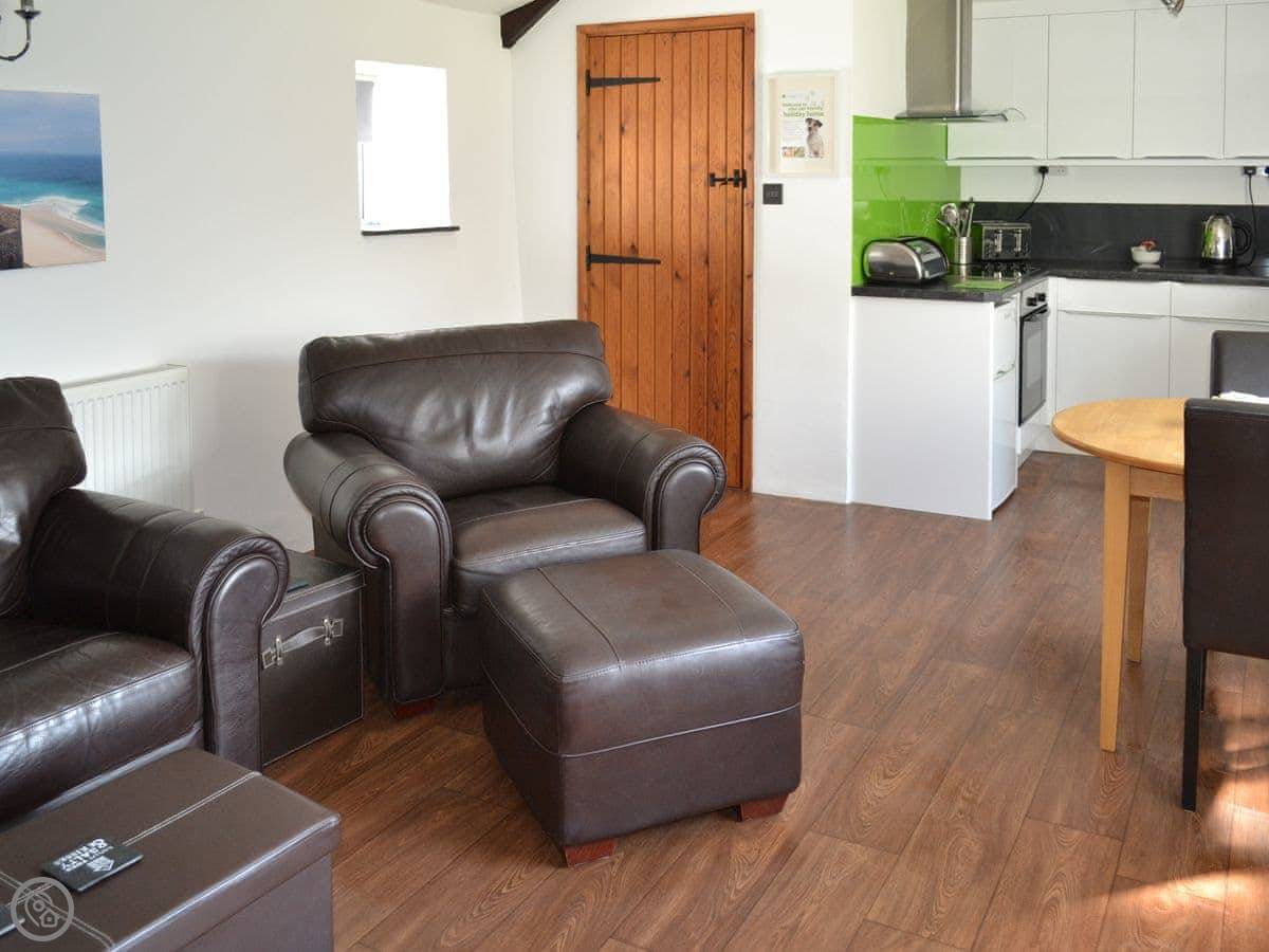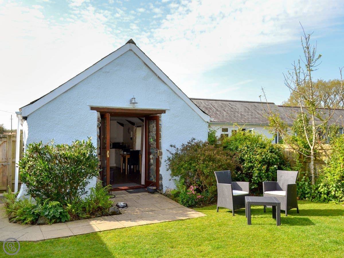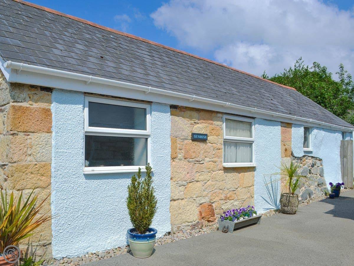 This is Sunrise. It's one of four cottages here in Hornick, near St Austell. It's detached, so you've got your own walls. There's a shared garden area with a summerhouse and a bit of play equipment if you've got children with you.