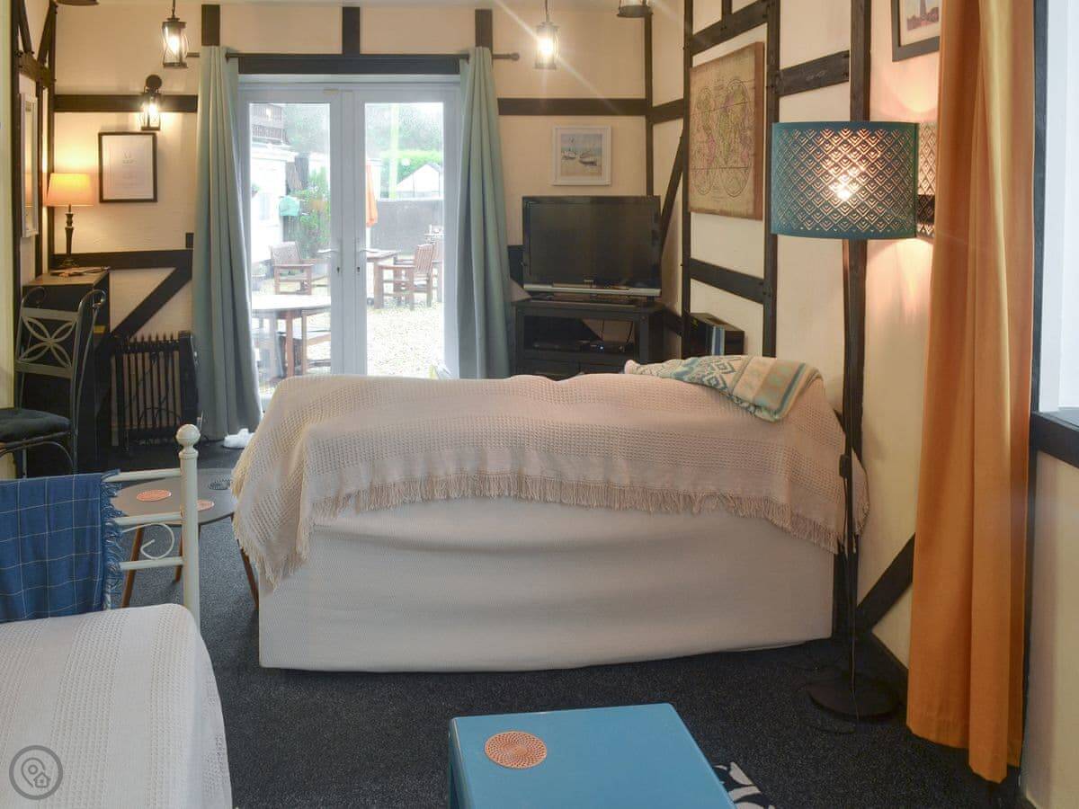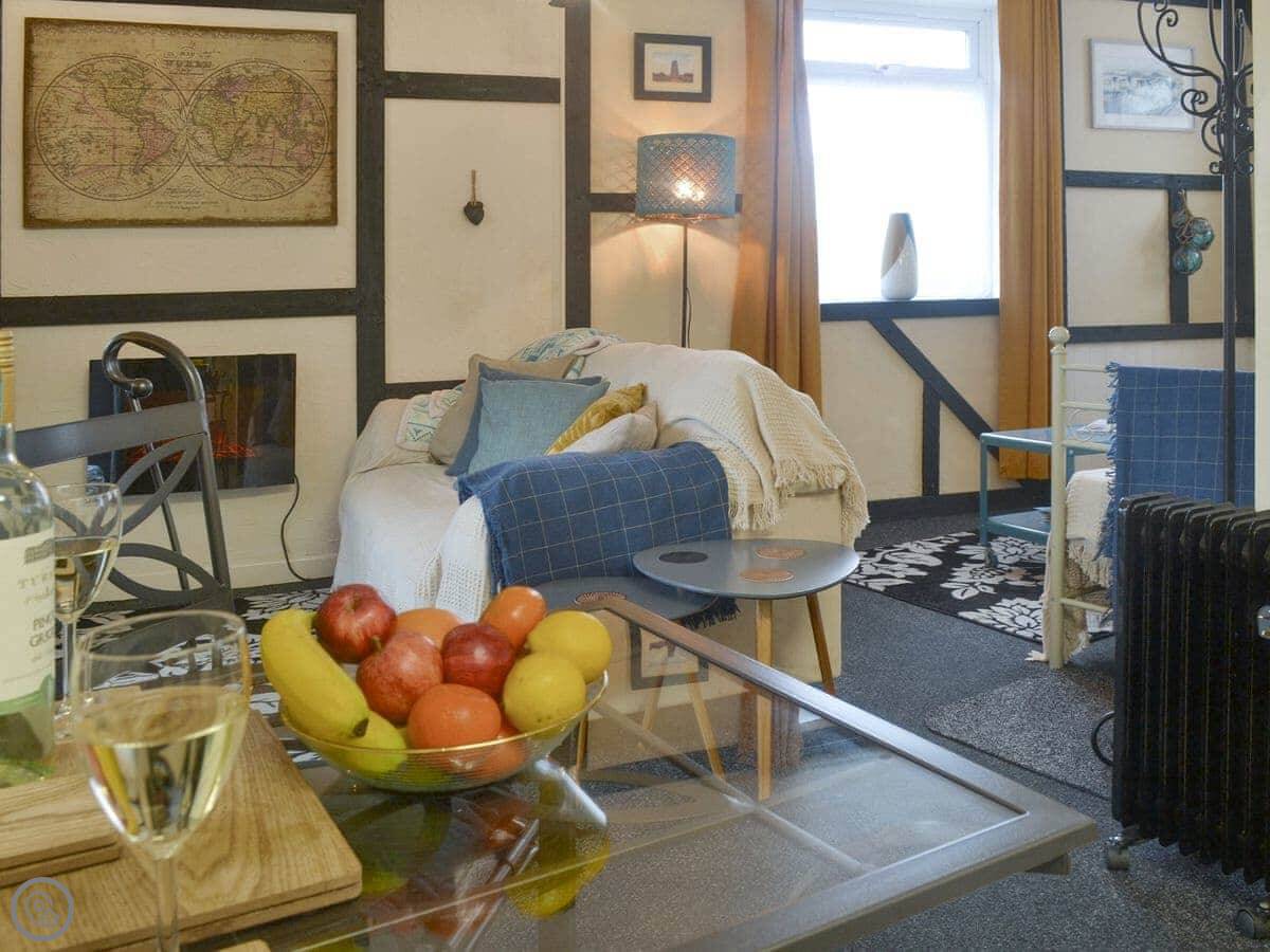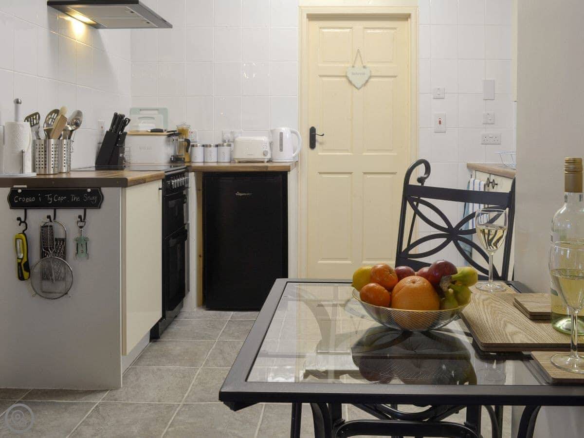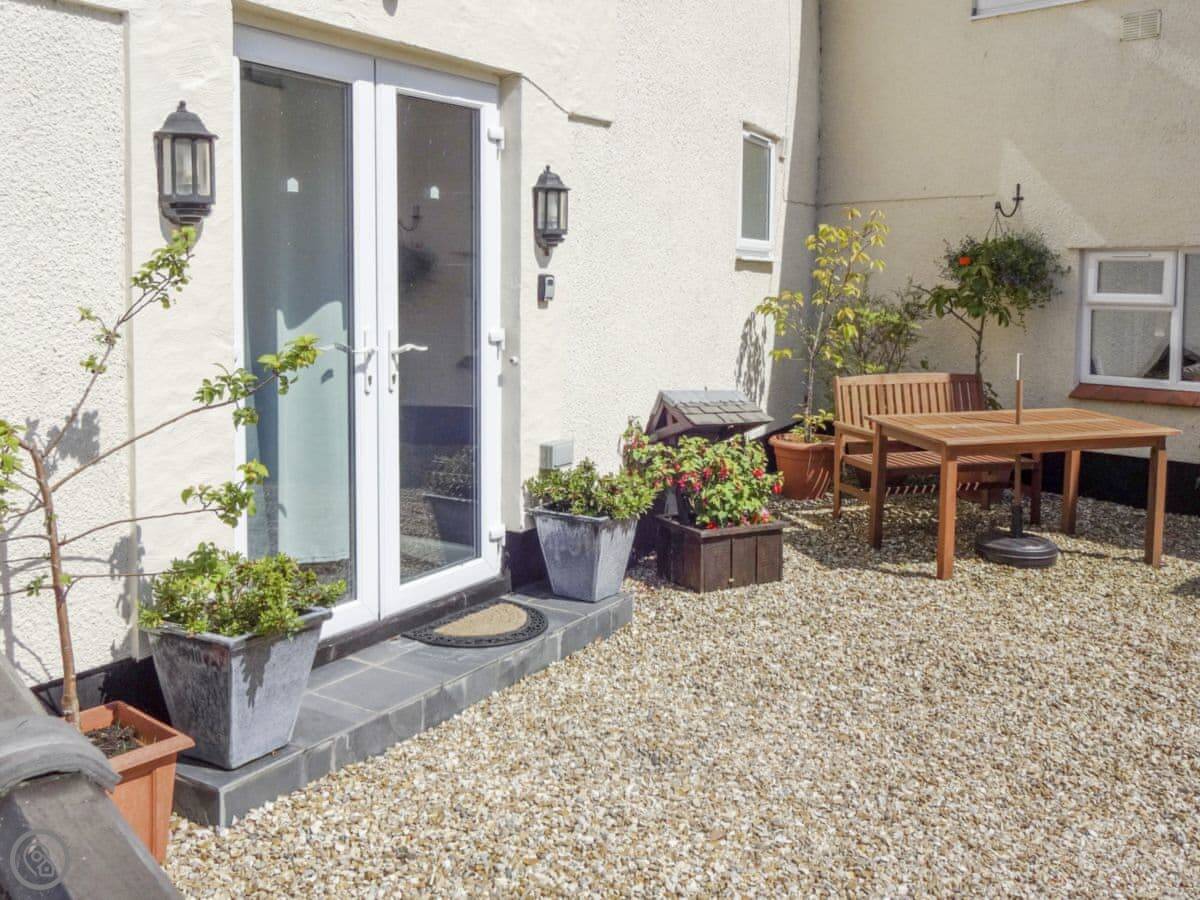 The Snug is in Penysarn, on Anglesey. It's a one-bedroom flat for two people. It's part of a small block of three, so you share the courtyard with the other apartments. The front door is behind Ty Copr, which is a local shop.
