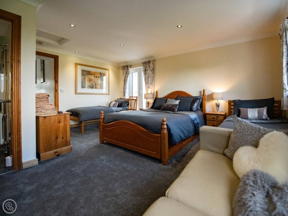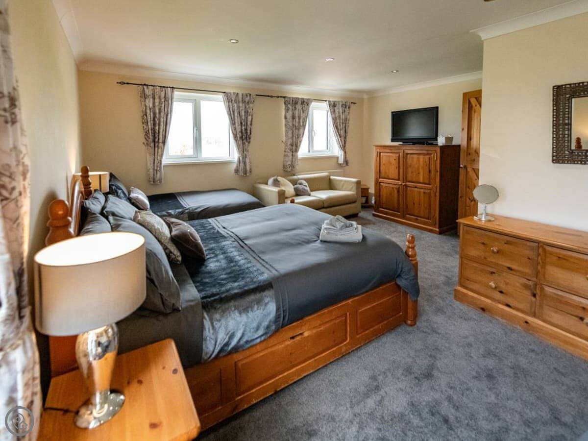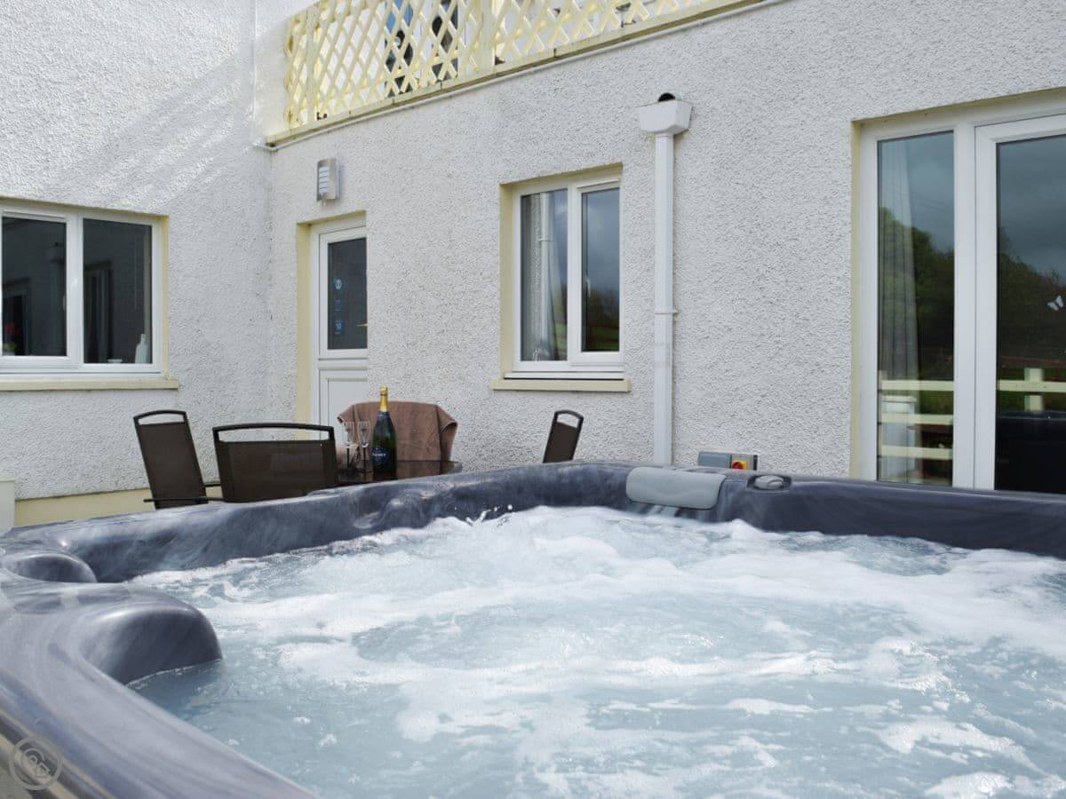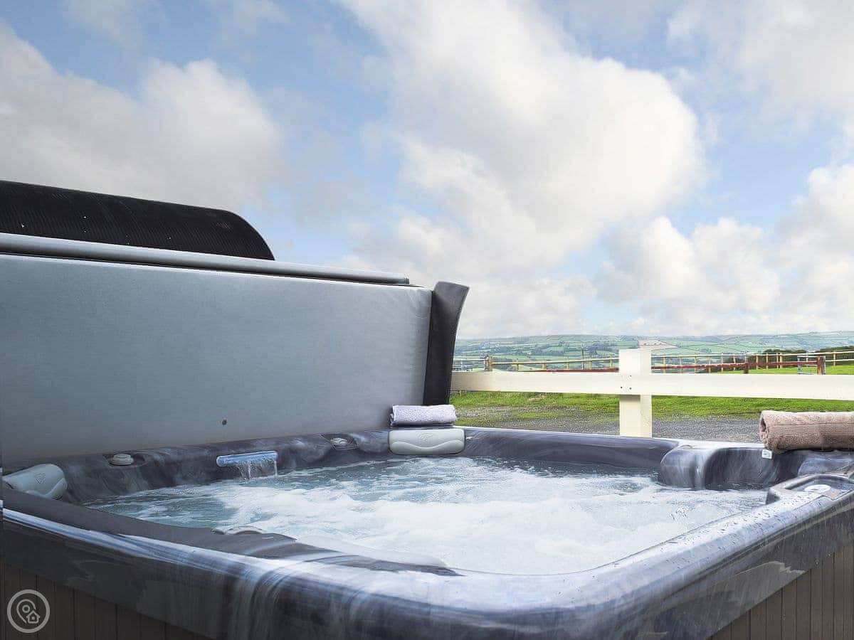 Outside, there's a patio with a barbecue and a private, enclosed paddock with views over the horse farm. There is also a hot tub.