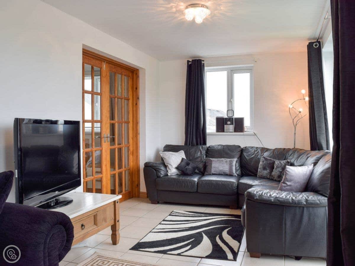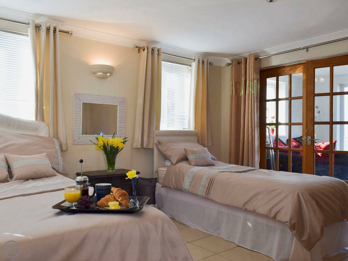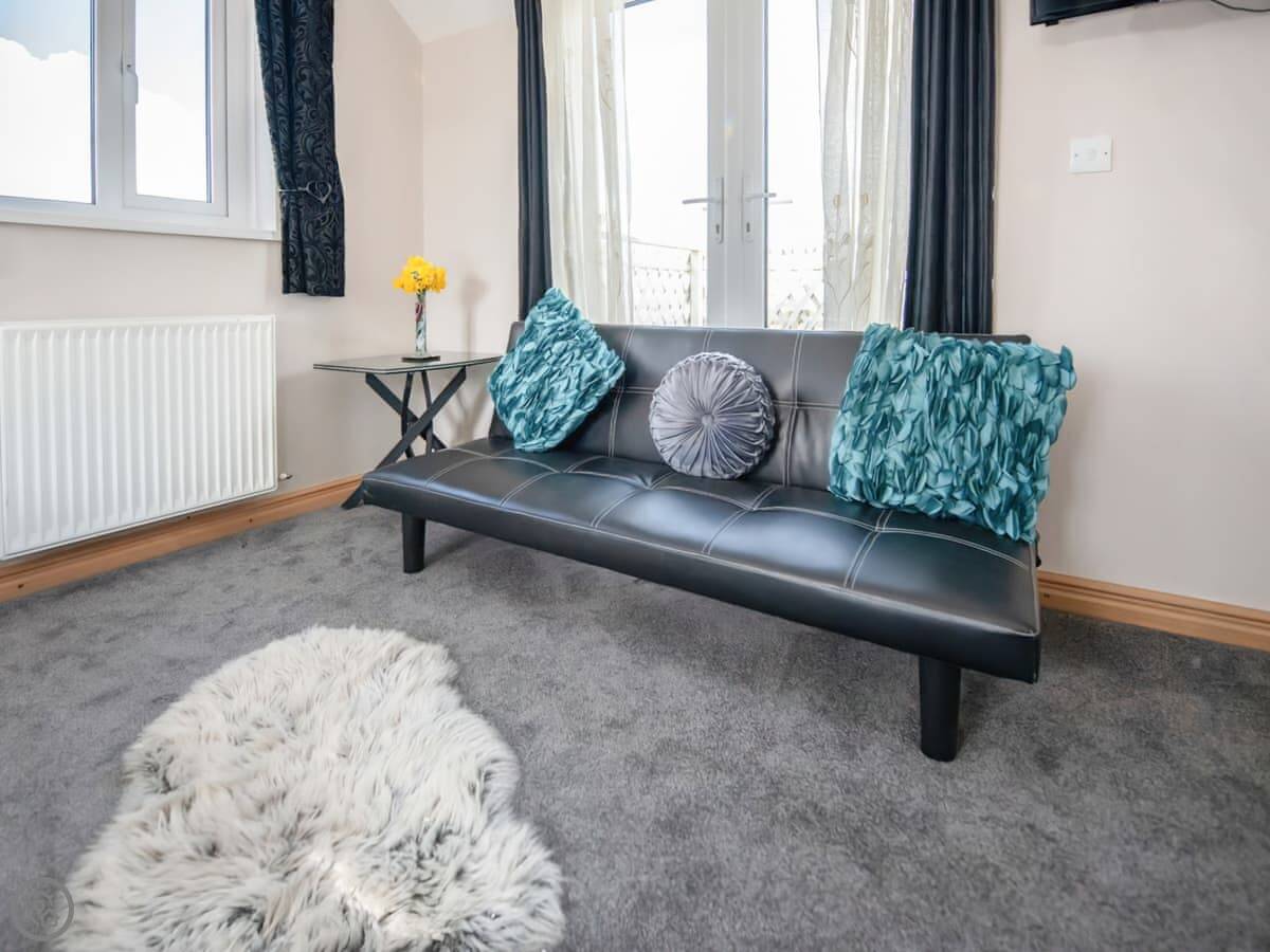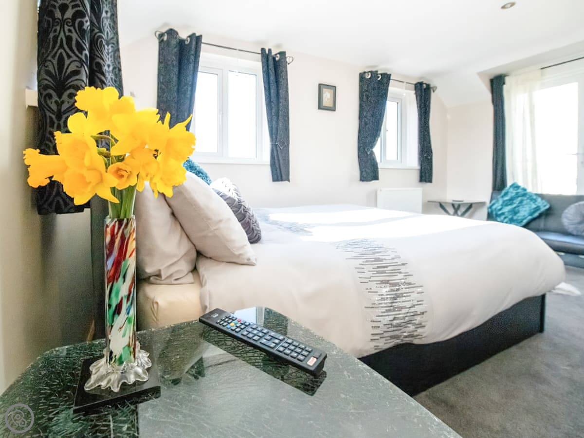Outside, there's a patio with a barbecue and a private, enclosed paddock with views over the horse farm. There is also a hot tub.