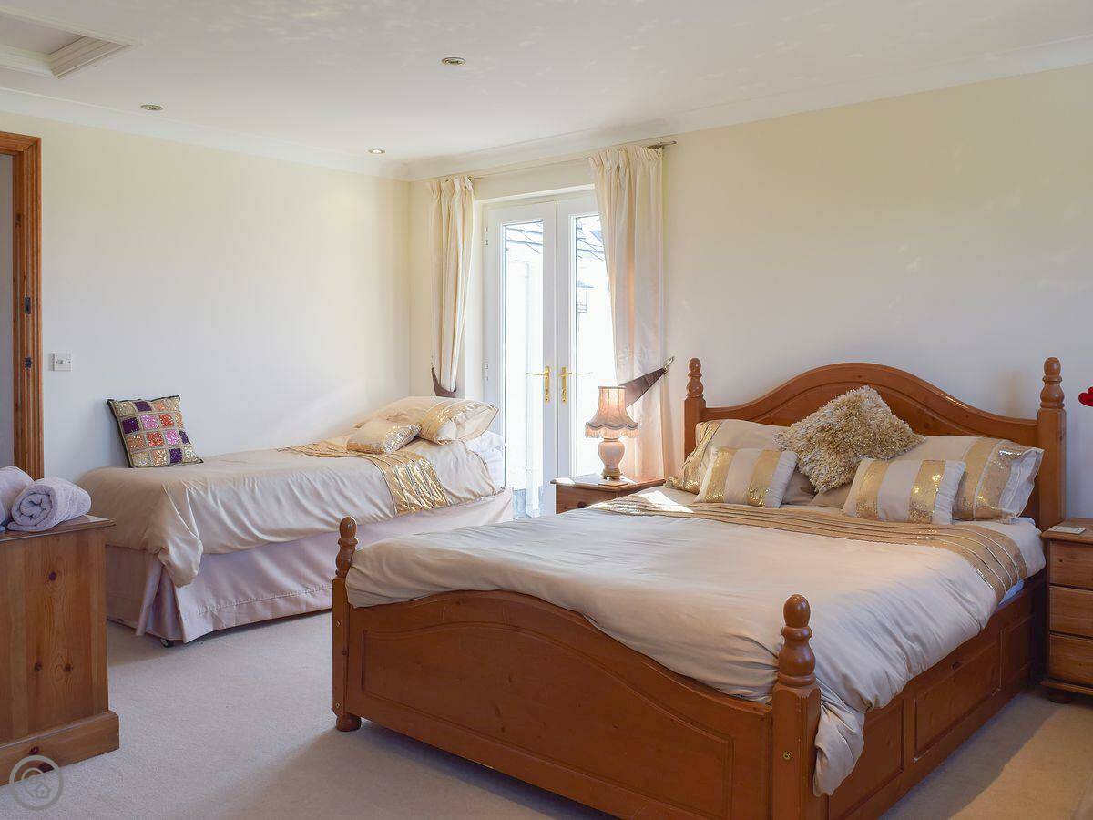 Bunny Meadows is a detached farmhouse in Llangynog, Carmarthenshire. It sleeps up to fourteen people. There are five bedrooms and six bathrooms, all en-suite. It has a 4 Star rating.