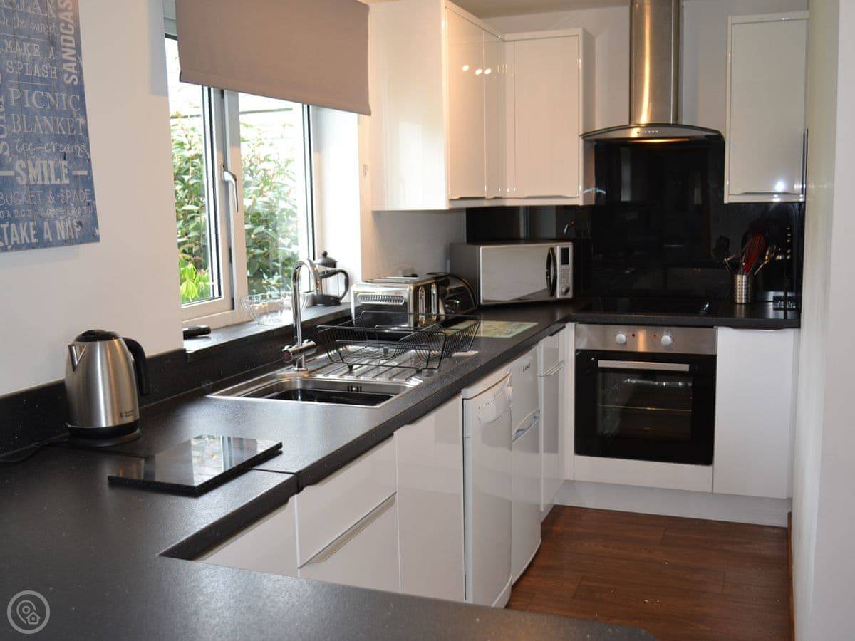 The rating is 4 Star. It's comfortable and well looked after. There's a dishwasher and a washing machine. The garden is enclosed, so it's fine for one dog. The parking is on site.