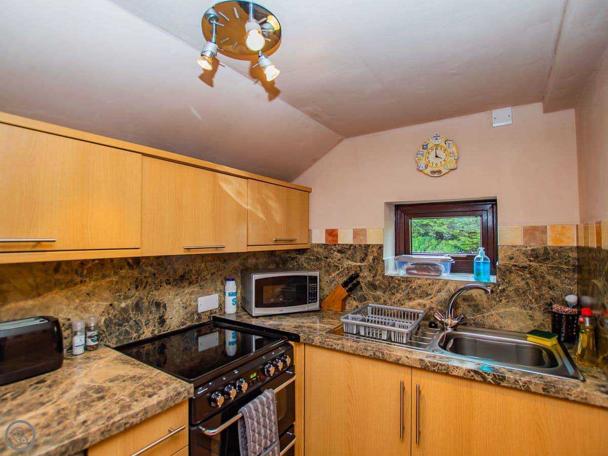 It's got a 4 Star rating. It's comfortable and well finished, not just basic. The wood burner works, or there's an electric fire if you'd rather. The stairs are a typical cottage staircase, so they're a bit steep and narrow.