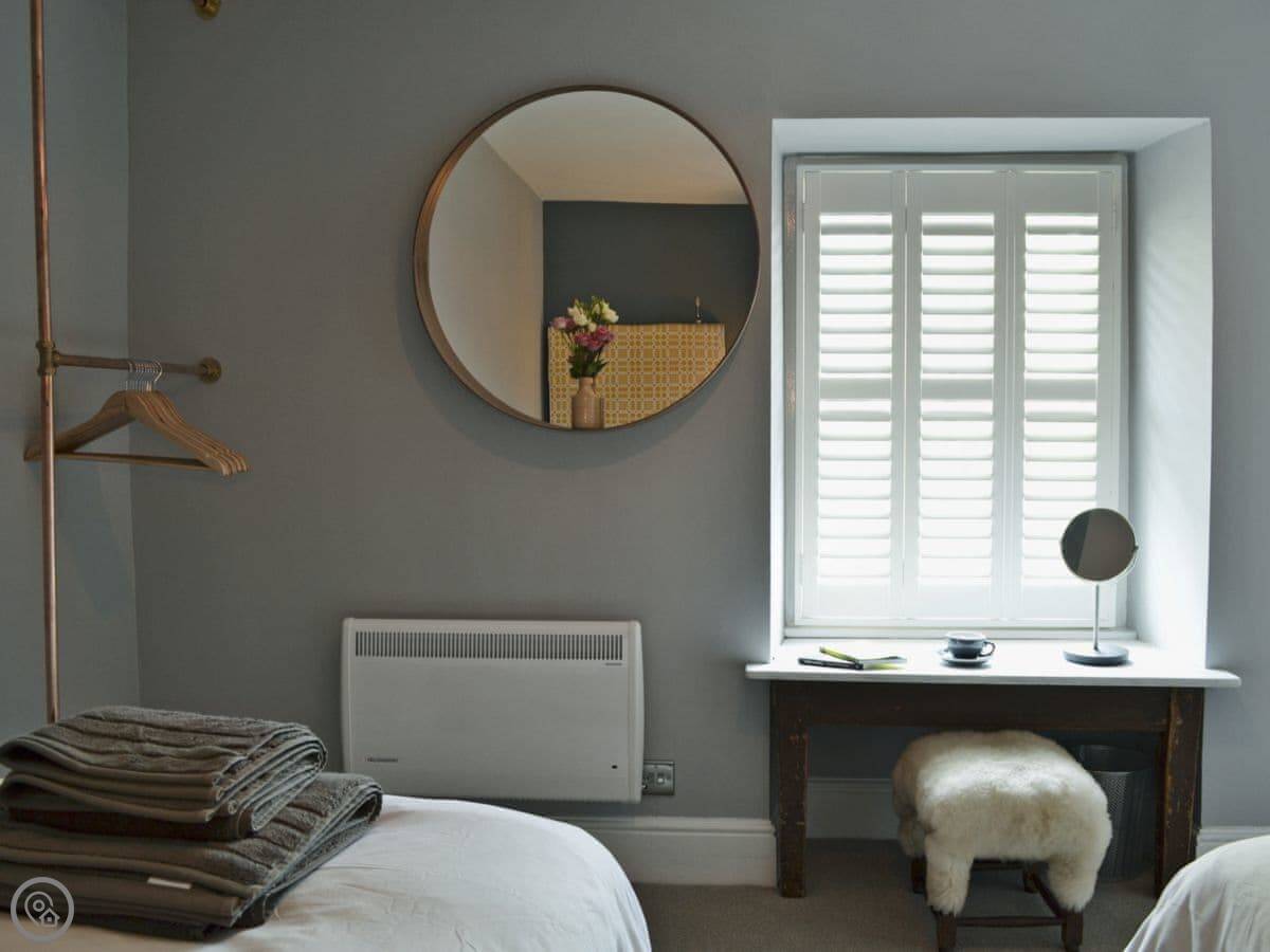 Situated in the heart of the colourful, picturesque and historic town of Llandeilo, No. 5 at Ginhaus sits within an 18th-century town house. The duplex apartment offers stylish and contemporary accommodation spread over the first and second floor. It is elegantly furnished with both a vintage and contemporary style. The staircase has a hand-crafted stained glass window and there are two spacious bedrooms and a luxury bathroom with a unique floor made up of penny coins. Llandeilo is right on your doorstep, and perfect for a weekend break, or a longer stay. Guests are welcome to bring their dog on holiday at no extra charge, but please note that the apartment does not have a garden or outside space. There are lots of lovely walks in the area though! There is an array of independent businesses including a famous chocolate shop, boutiques and many restaurants and cafés dotted around the town. Llandeilo is fast gaining the reputation as a leading independent shopping and eating destination in Wales.