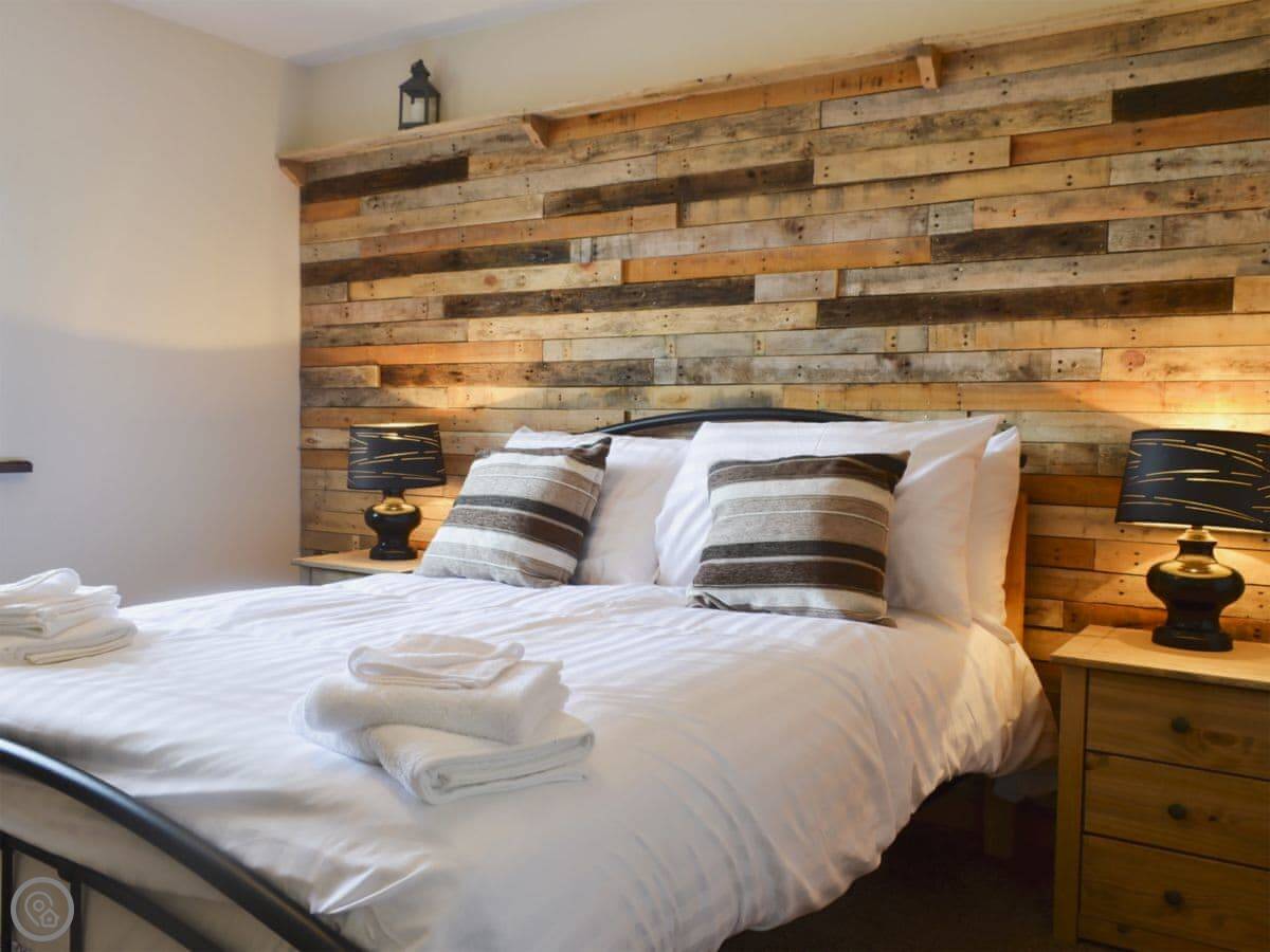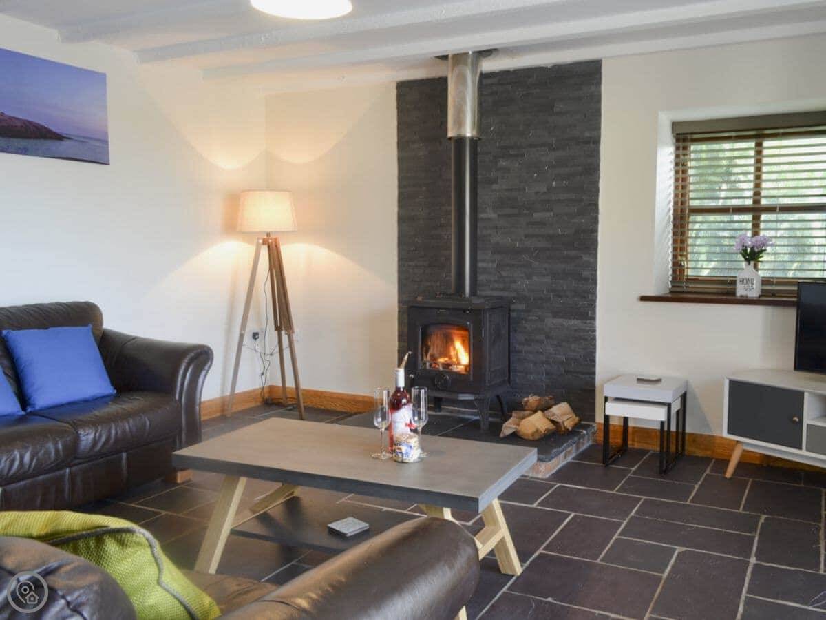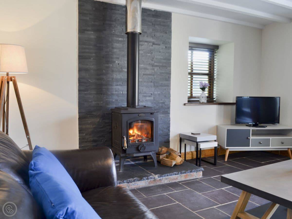 Inside, there's the wood burner, a washing machine, TV, WiFi. Bedding and towels are included. There's a cot and highchair. The garden is enclosed, which is handy with dogs. You can bring two.