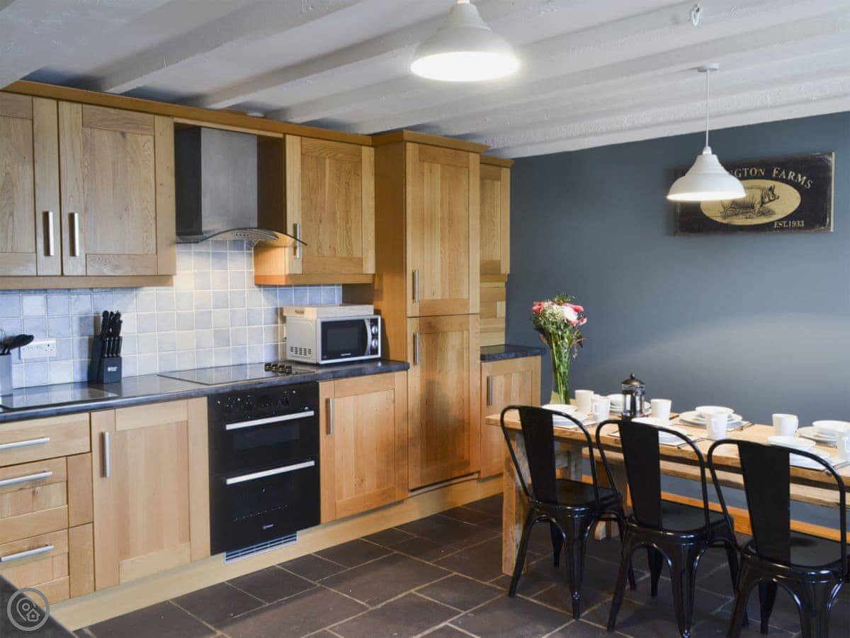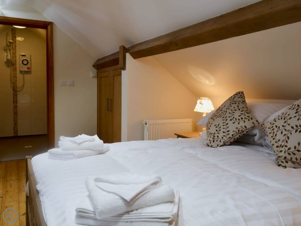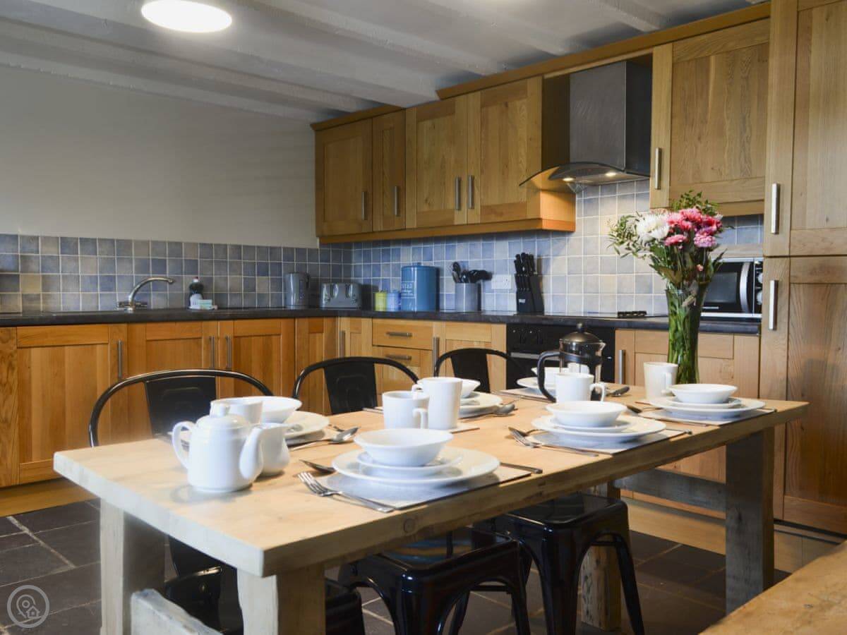 Inside, there's the wood burner, a washing machine, TV, WiFi. Bedding and towels are included. There's a cot and highchair. The garden is enclosed, which is handy with dogs. You can bring two.