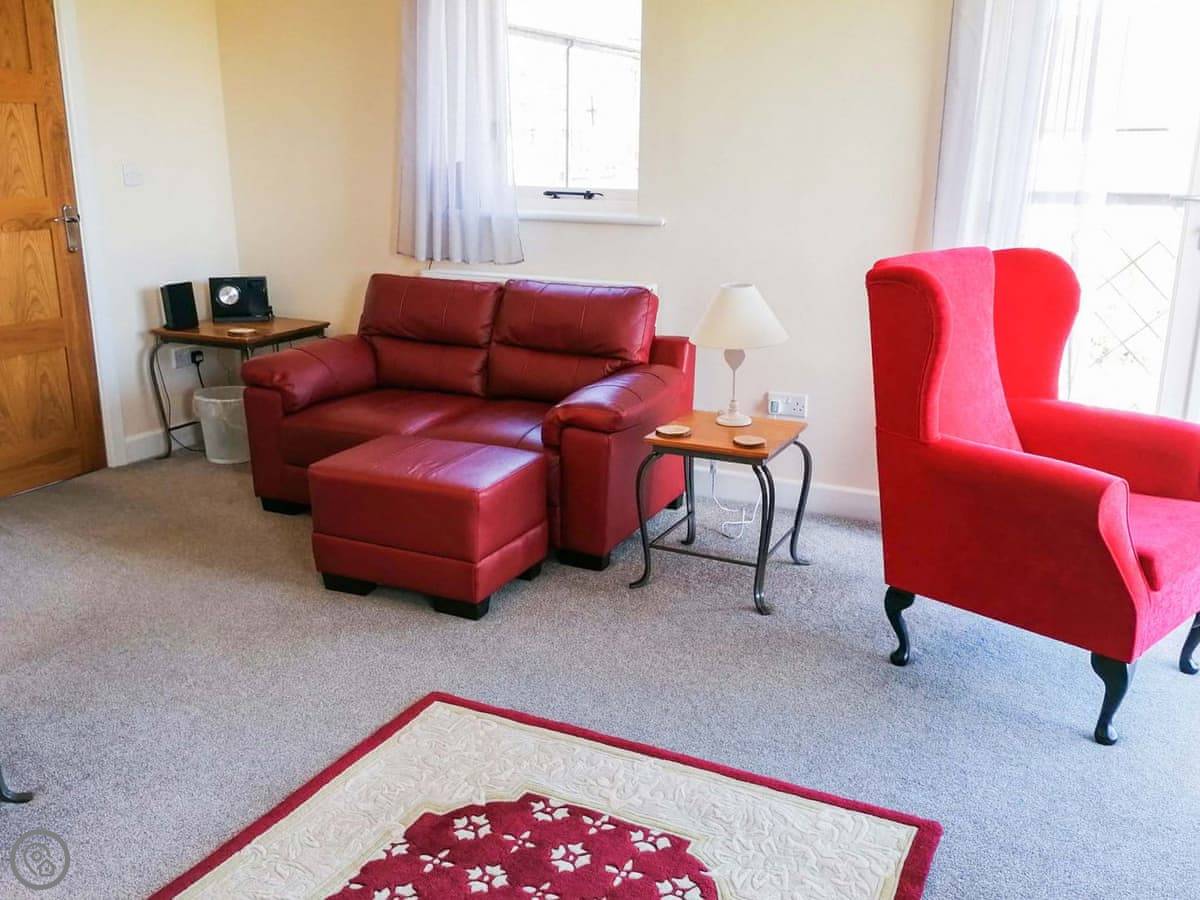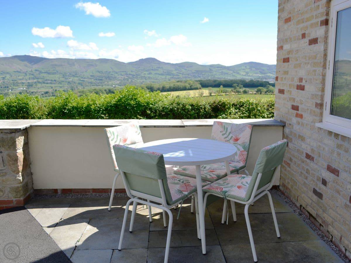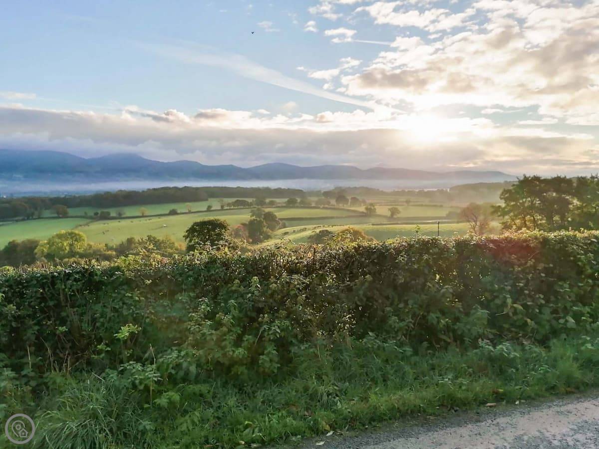 The main thing is the view. You're up a lane, about a mile and a half, so you look right out over the valley towards Moel Famau and the Clwydian Range. The living room has doors that open onto a Juliet balcony. You can just sit there with a drink. It's very quiet.