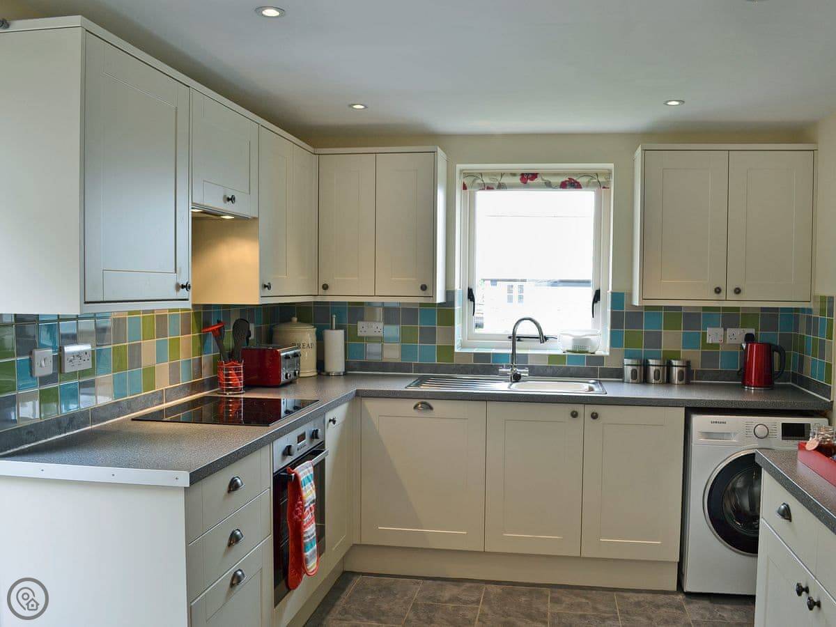 Inside, there's a washing machine, dishwasher, WiFi, and TV. Bedding and towels are included. We've got a cot, highchair, and a stairgate if you need them. No pets, sorry.