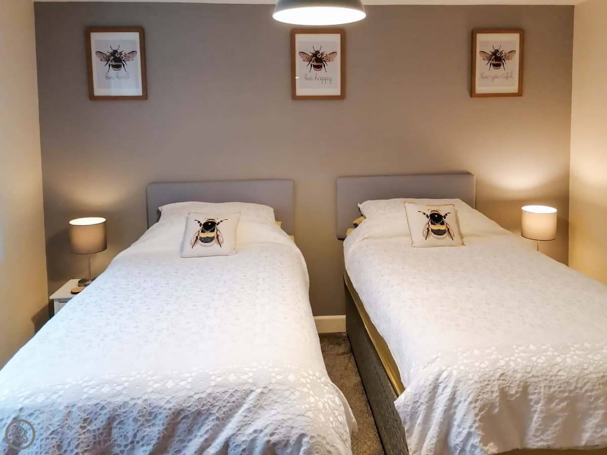 It sleeps four. Two bedrooms upstairs, one bathroom. It's got a 4 Star rating. It's comfortable and clean.