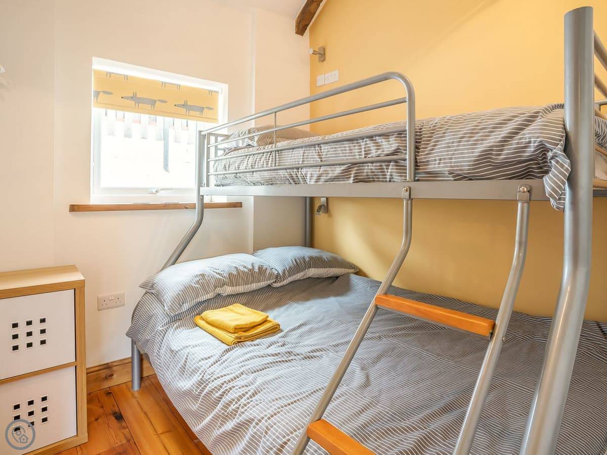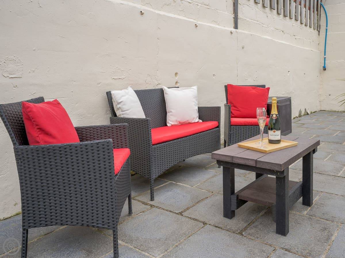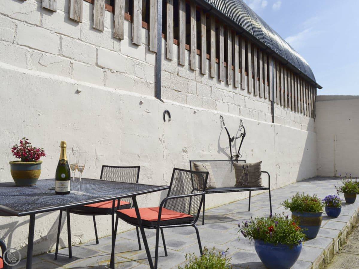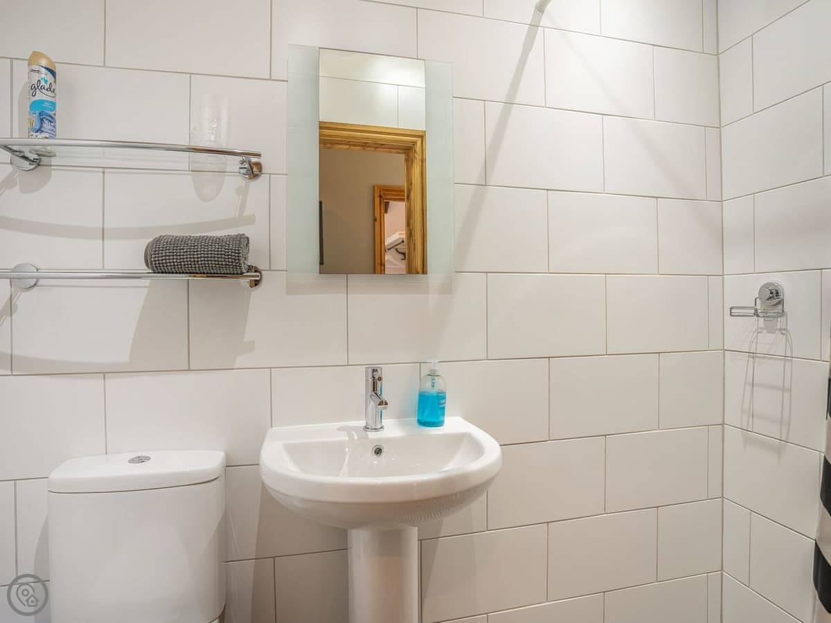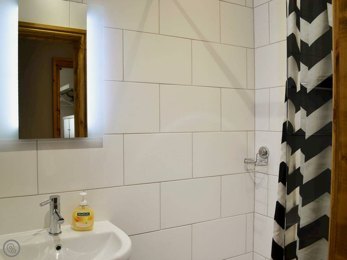 It sleeps five. There are two bedrooms and two bathrooms. One bathroom is a wet room on the ground floor. It’s got a 4 Star rating. It’s clean and warm, with wooden beams and a slate floor. The furniture is a mix of old and new. It’s open plan.