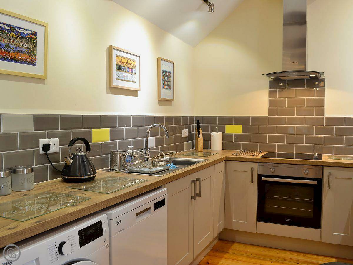 For facilities: there’s a dishwasher, washing machine, WiFi, and TV. Bedding and towels are included. There’s a cot if you need it. Parking is right outside. We’ve installed an electric vehicle charger. Sorry, no pets.