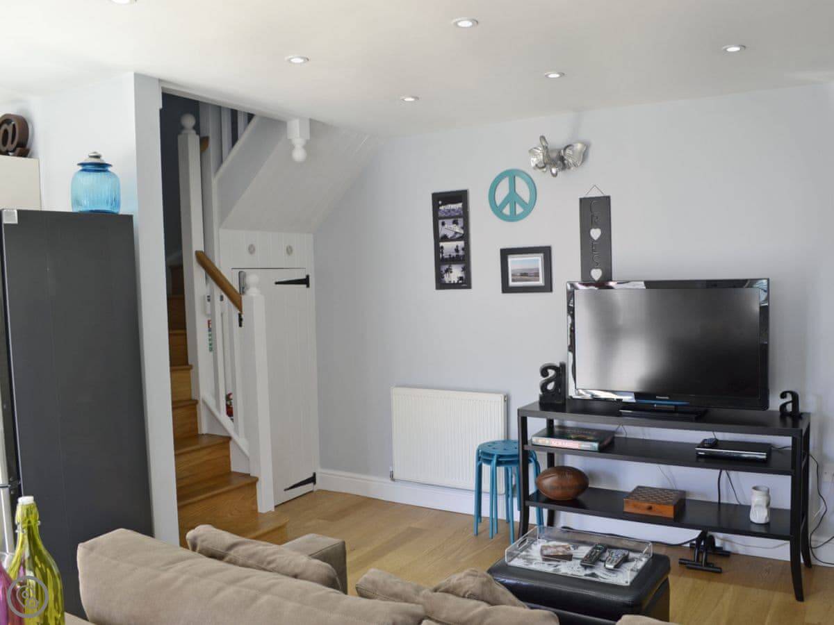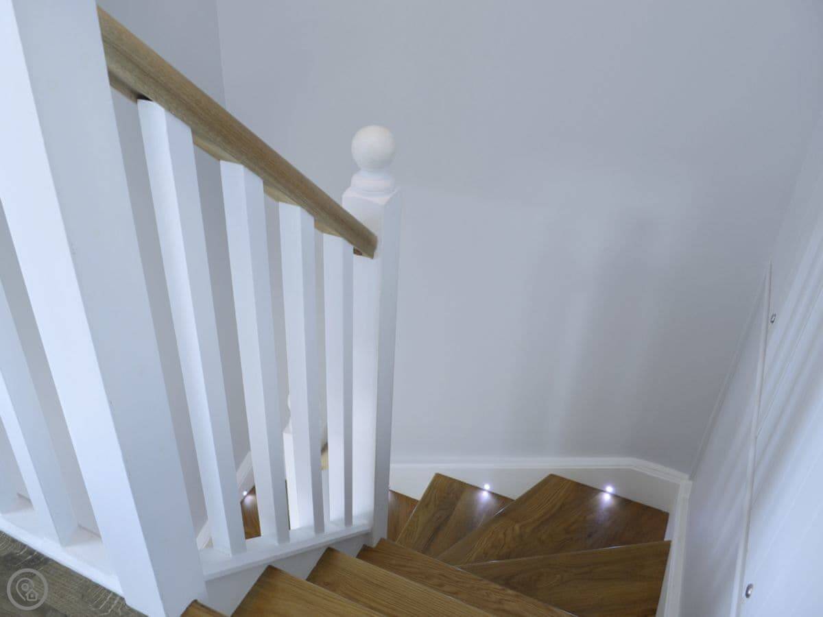 Stable Cottage is in the middle of Llandeilo. It's a one bedroom place, just for two. You get the whole cottage to yourselves. It used to be a stable, obviously, so the rooms are a good size but the layout is a bit unusual. The kitchen is downstairs and the bedroom and bathroom are up a flight of stairs.