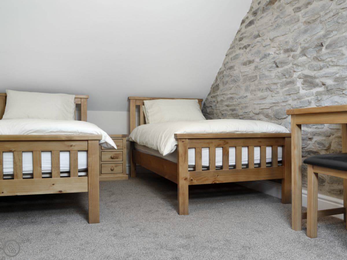The cottage sleeps four. Two bedrooms, one bathroom downstairs which is a wet room. It's got full wheelchair access, right from the parking spot through to the bathroom.