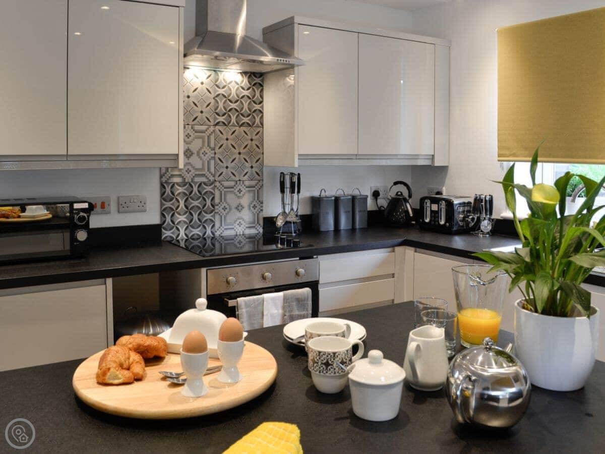 For facilities: it's got parking, WiFi, a TV, dishwasher, washing machine. Bedding and towels are included. We can provide a cot, highchair, and stairgate. It's fine for pets, we allow up to two.