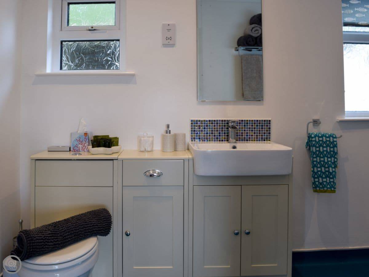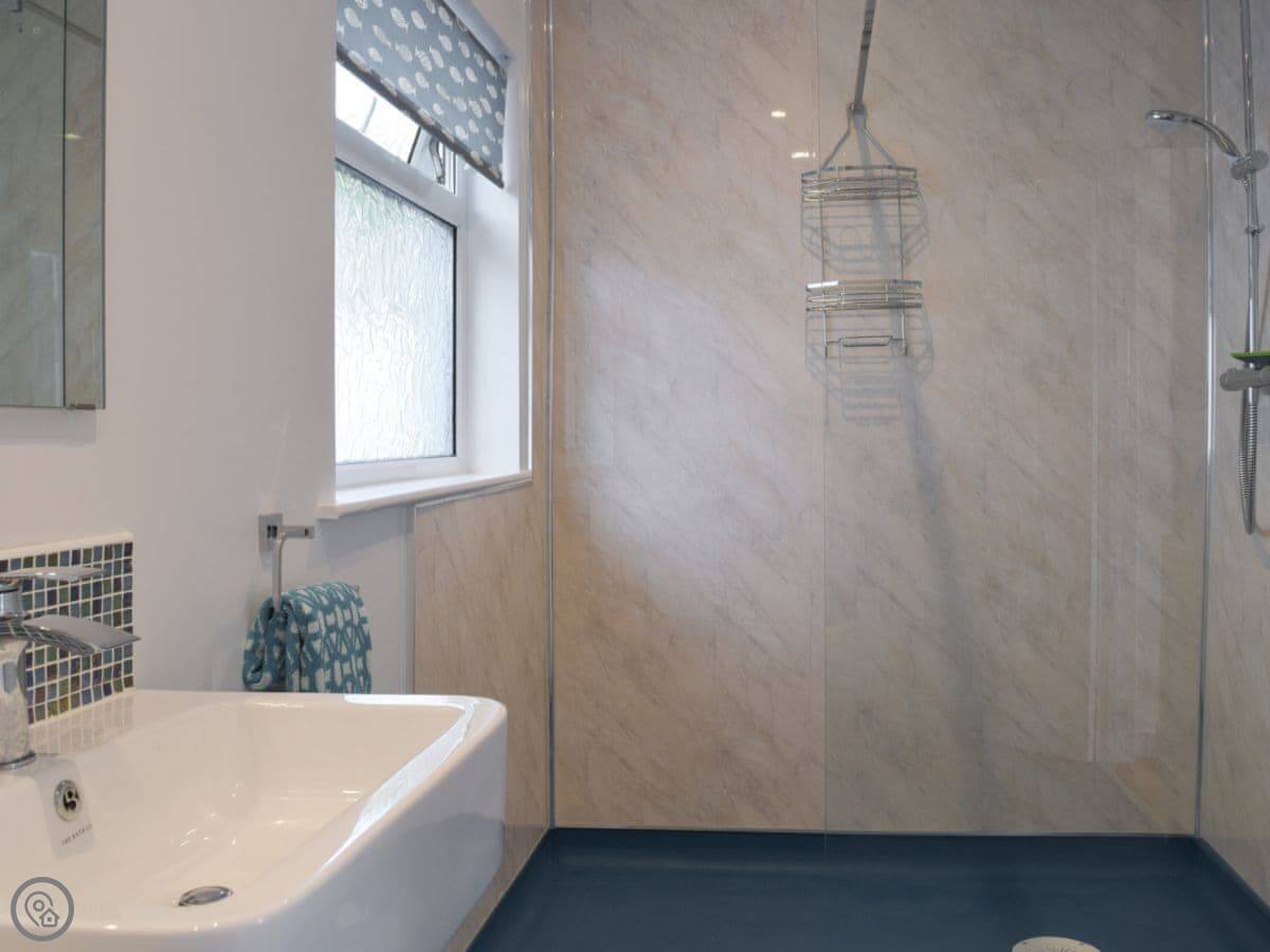 Caldey View is in Stepaside, near Wisemans Bridge in Pembrokeshire. It's a bungalow, so everything's on one level, which is good. It sleeps six, in three bedrooms. There's one bathroom with a walk-in shower.