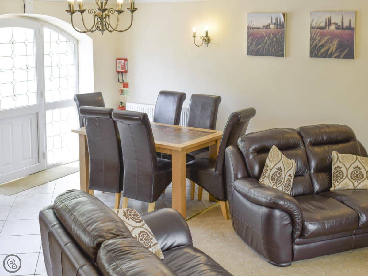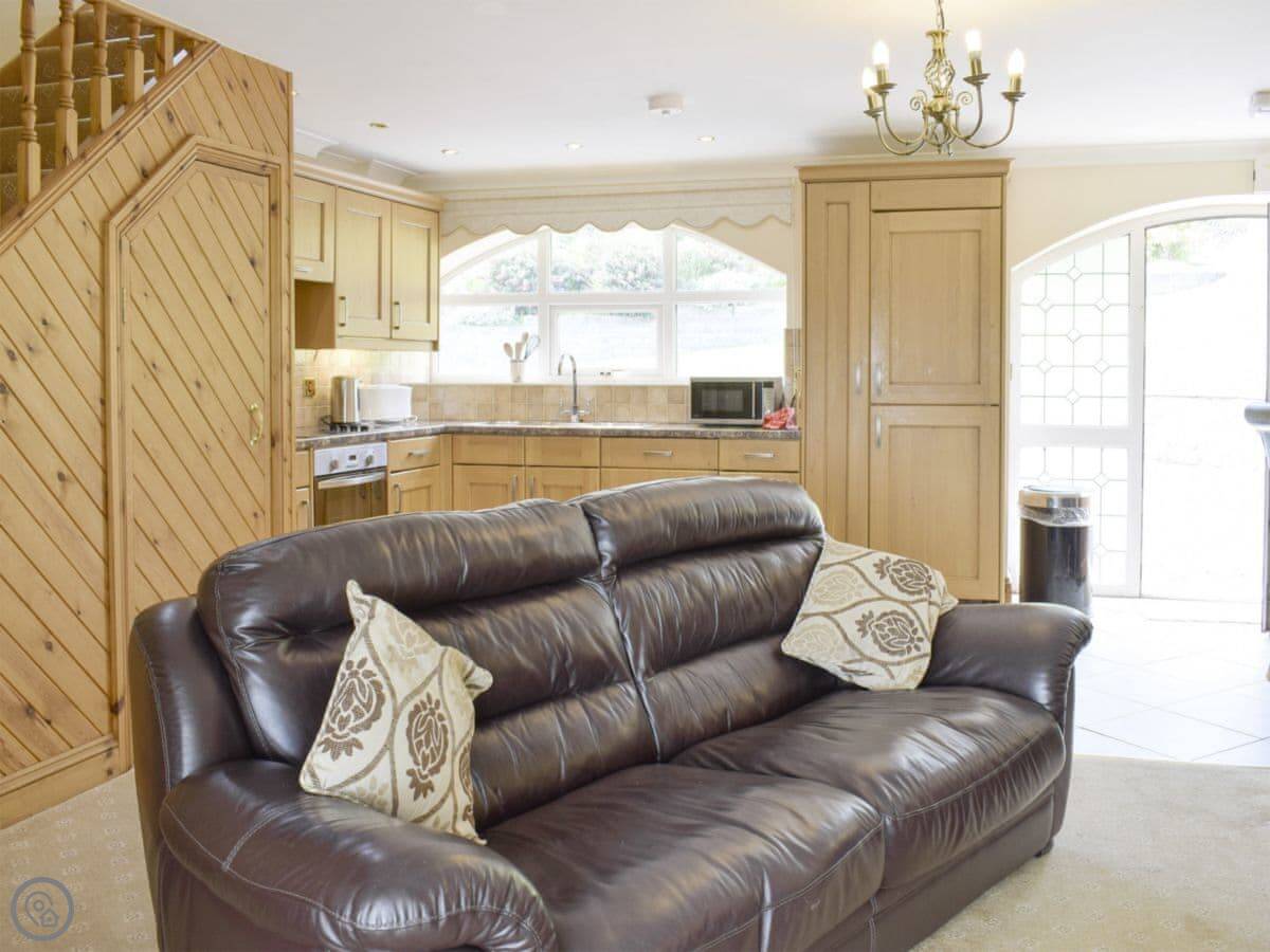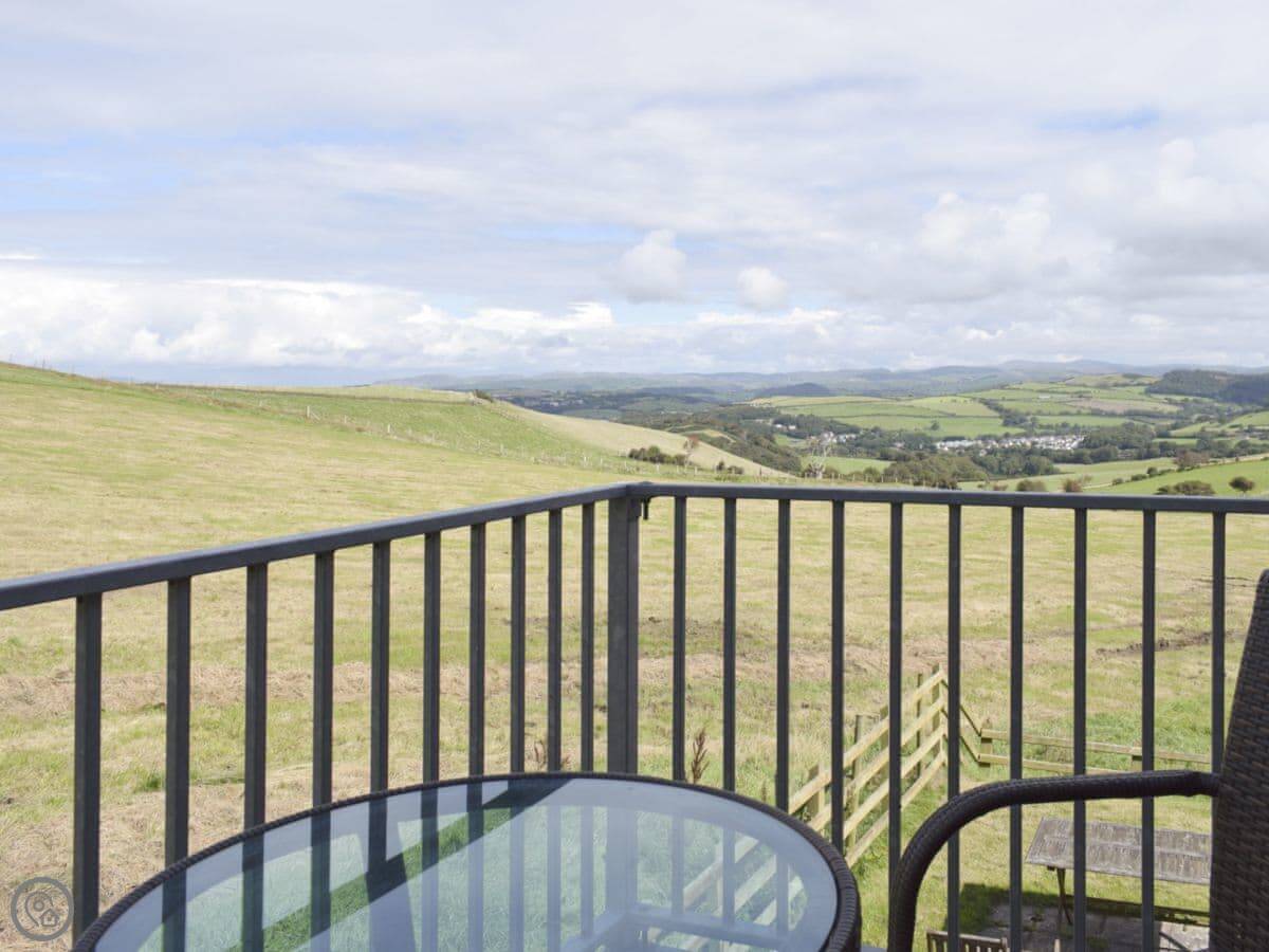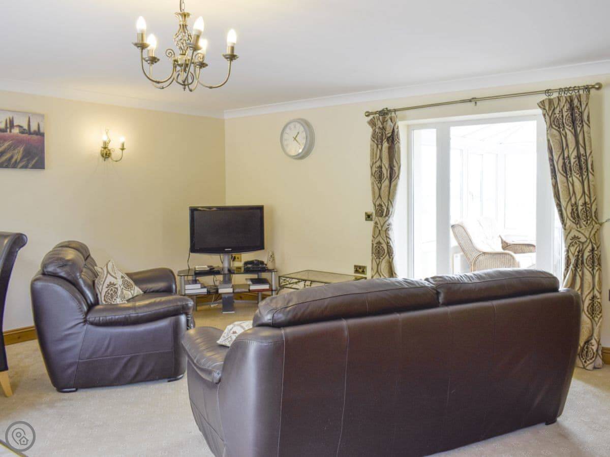 It sleeps six. There are two bedrooms and one bathroom. It's got a 4 Star rating, so it's comfortable and well looked after. The main thing is the conservatory. It runs along the back, looks out over the valley, and gets the sun. It's a good spot to sit.