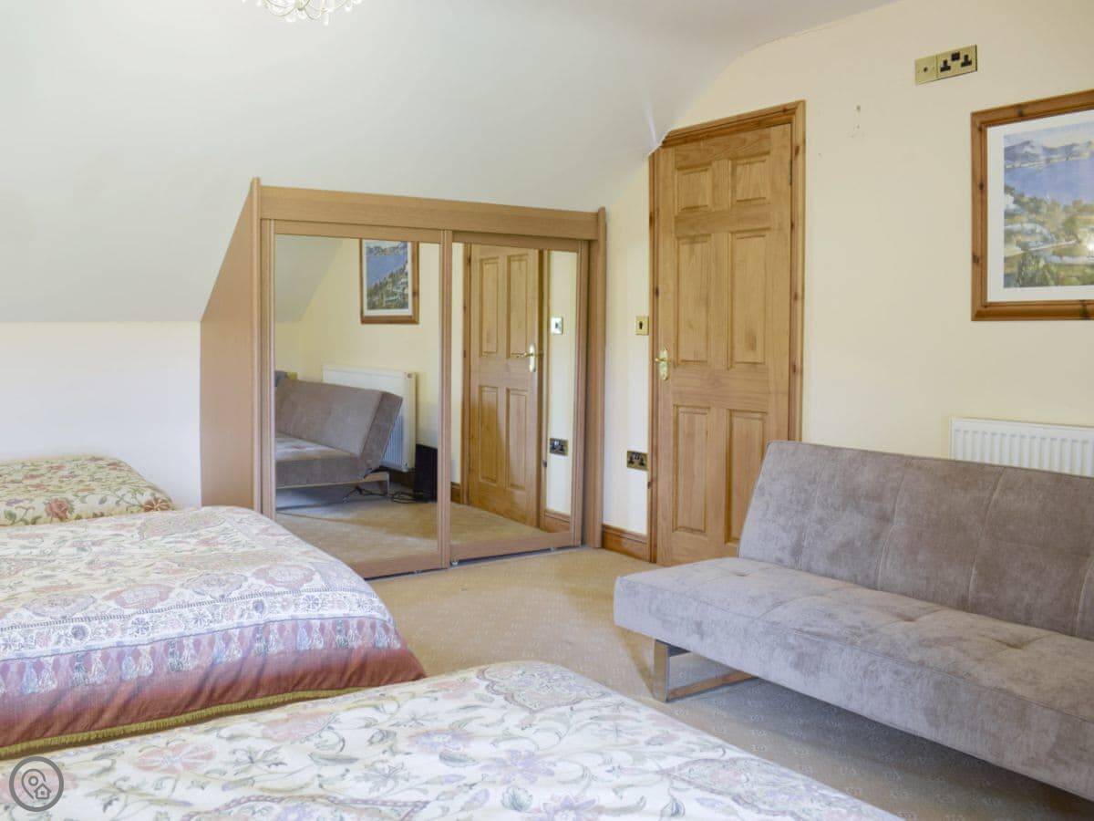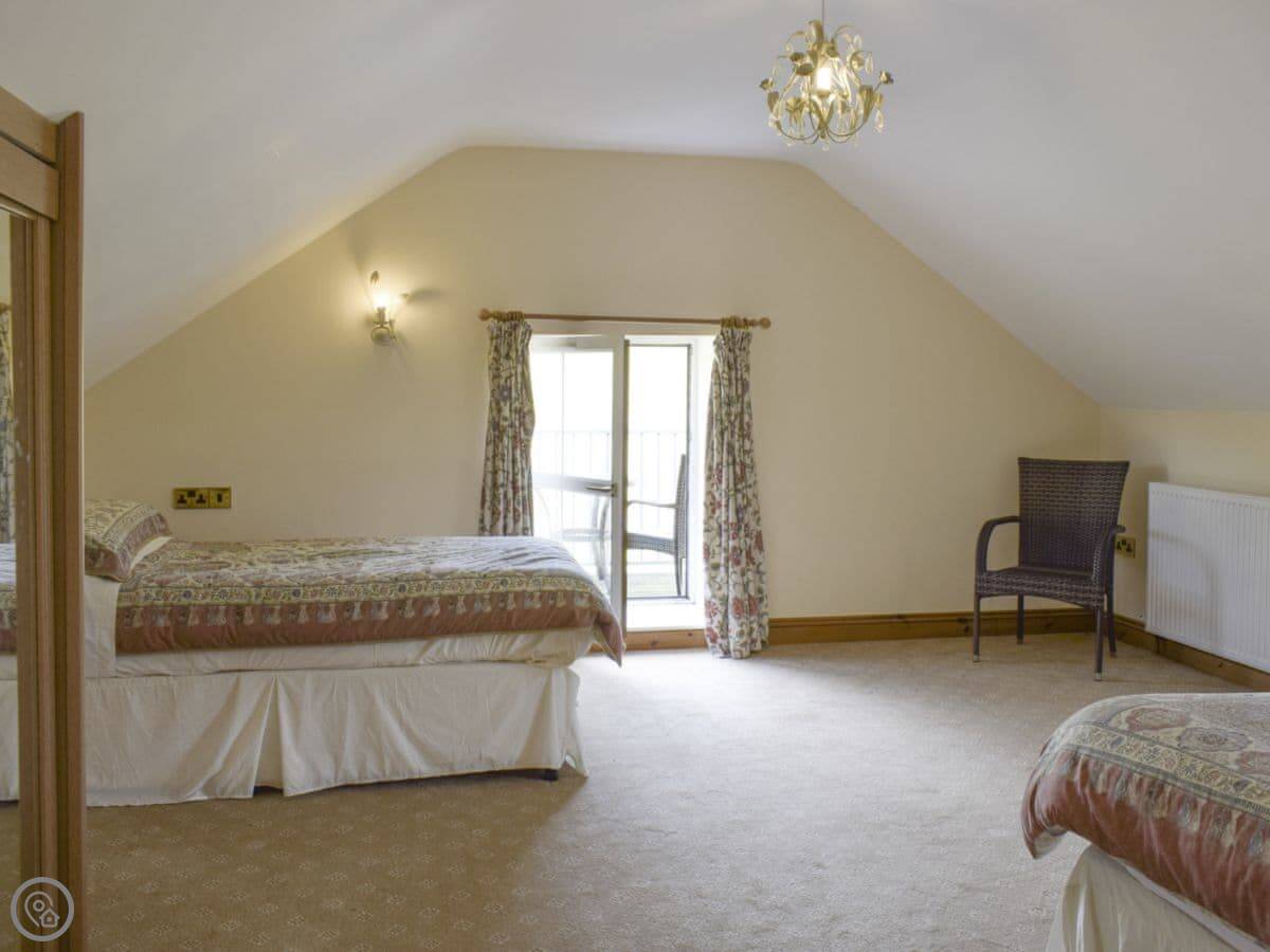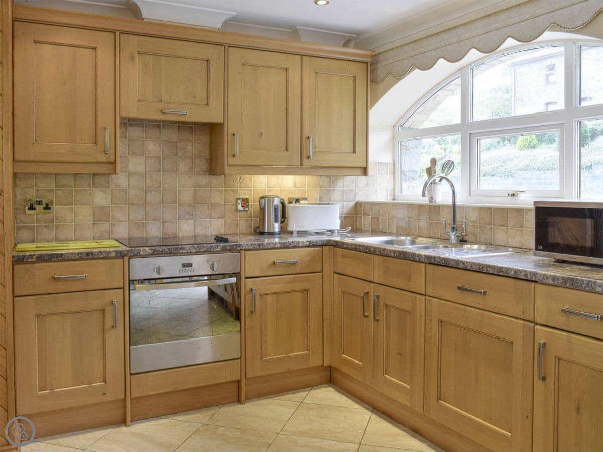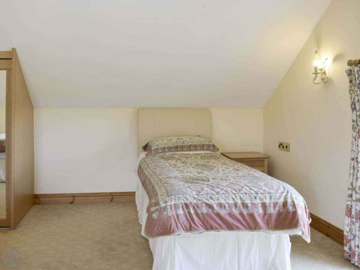 It sleeps six. There are two bedrooms and one bathroom. It's got a 4 Star rating, so it's comfortable and well looked after. The main thing is the conservatory. It runs along the back, looks out over the valley, and gets the sun. It's a good spot to sit.