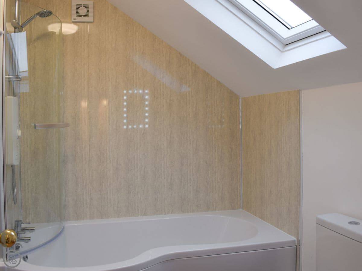 The place has a 4 Star rating. It's got the things you'd expect: a washing machine, dishwasher, WiFi. Bedding and towels are included. There's a cot and a highchair if you need them. Parking is on the drive.