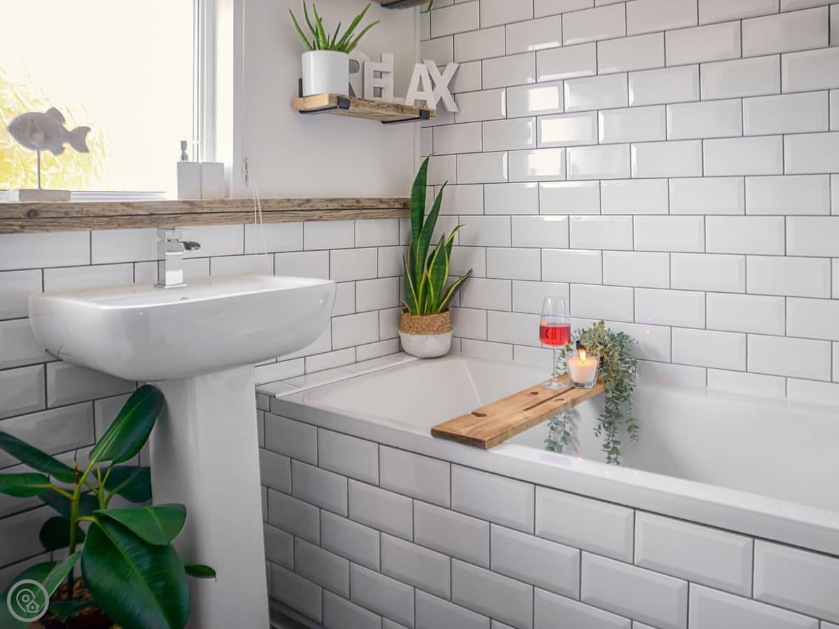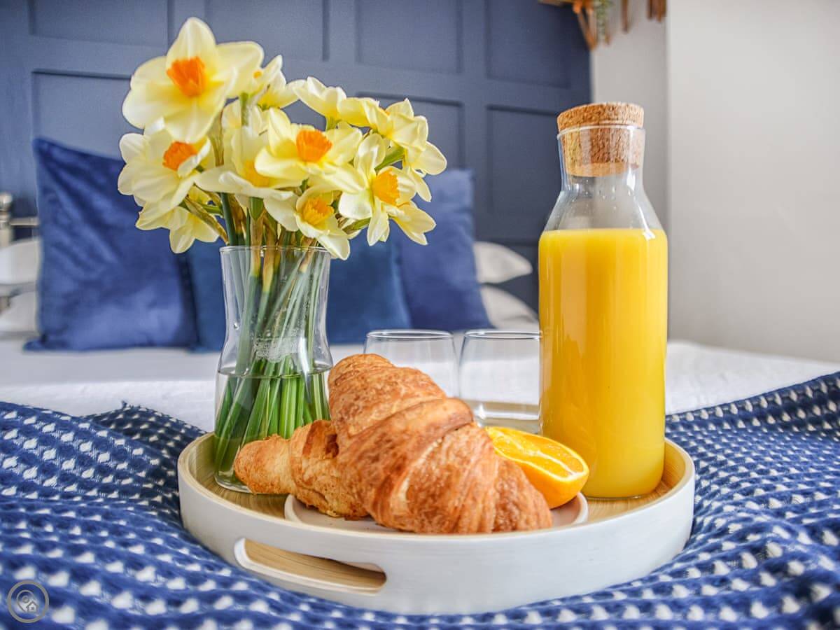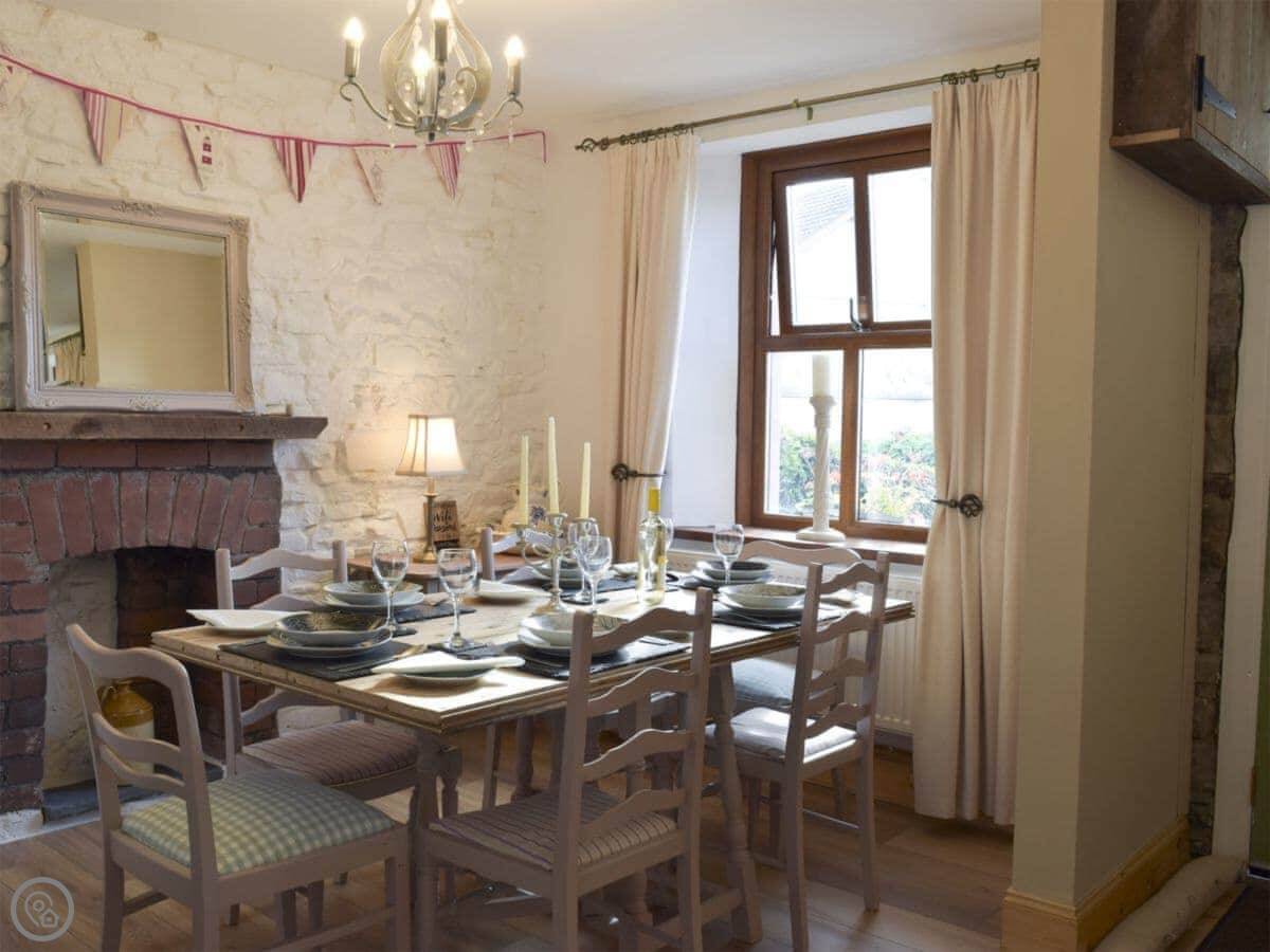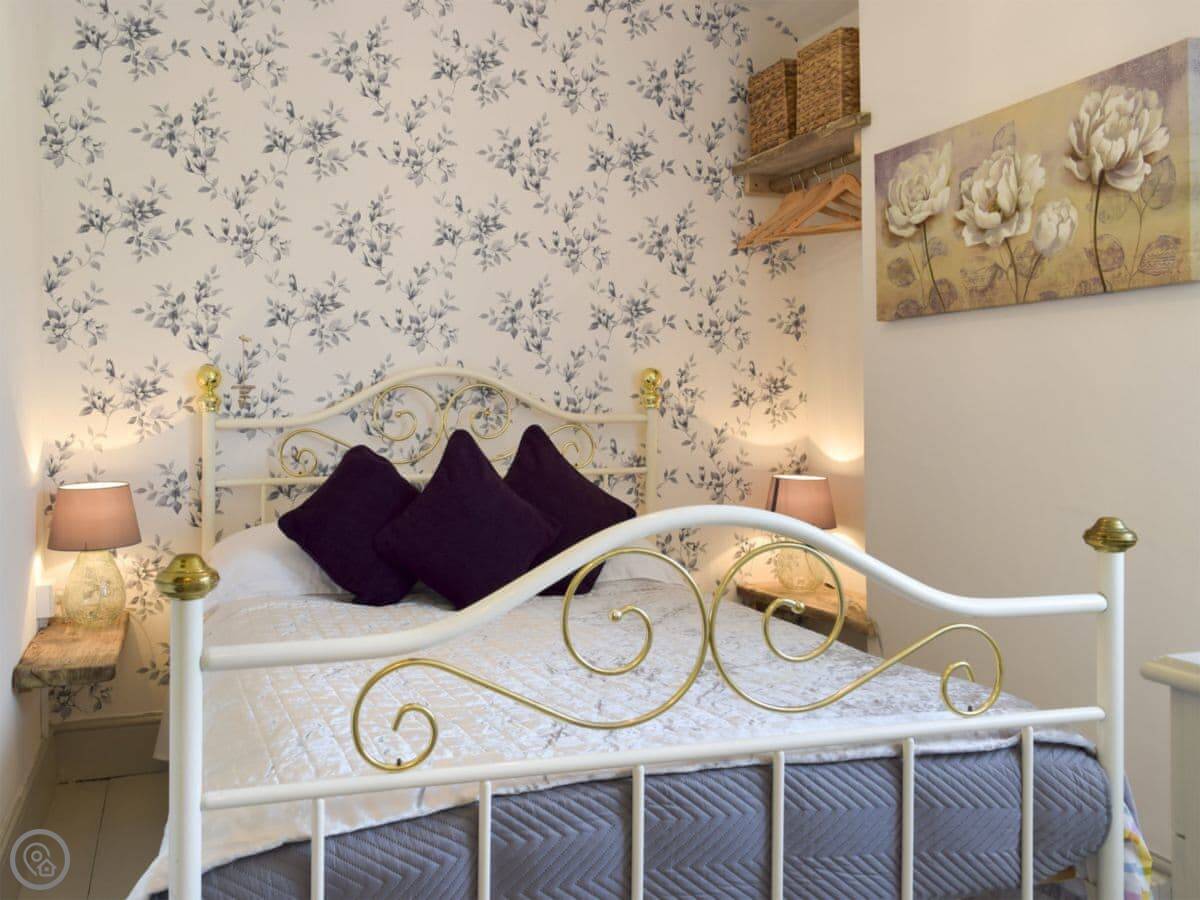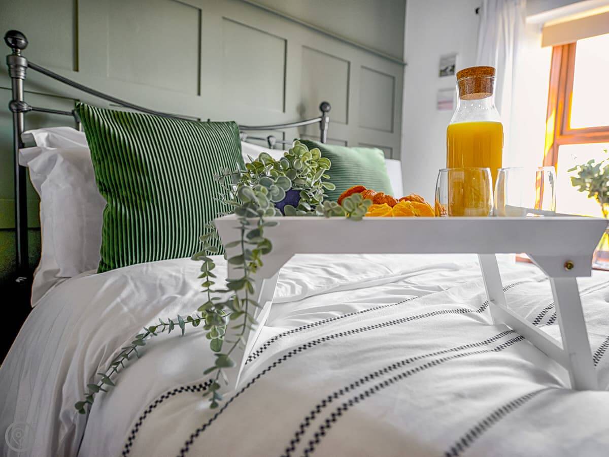 In terms of things here, there's a washing machine, a wood burner, WiFi, and TV. Bedding and towels are included. There's a cot and a highchair if you need them. The garden is out the back, it's enclosed. You can bring two dogs.