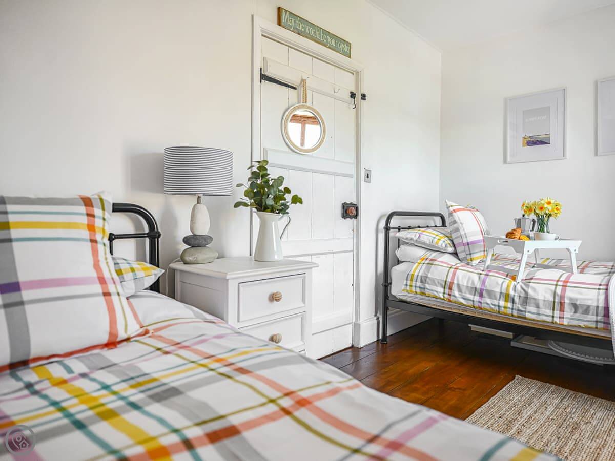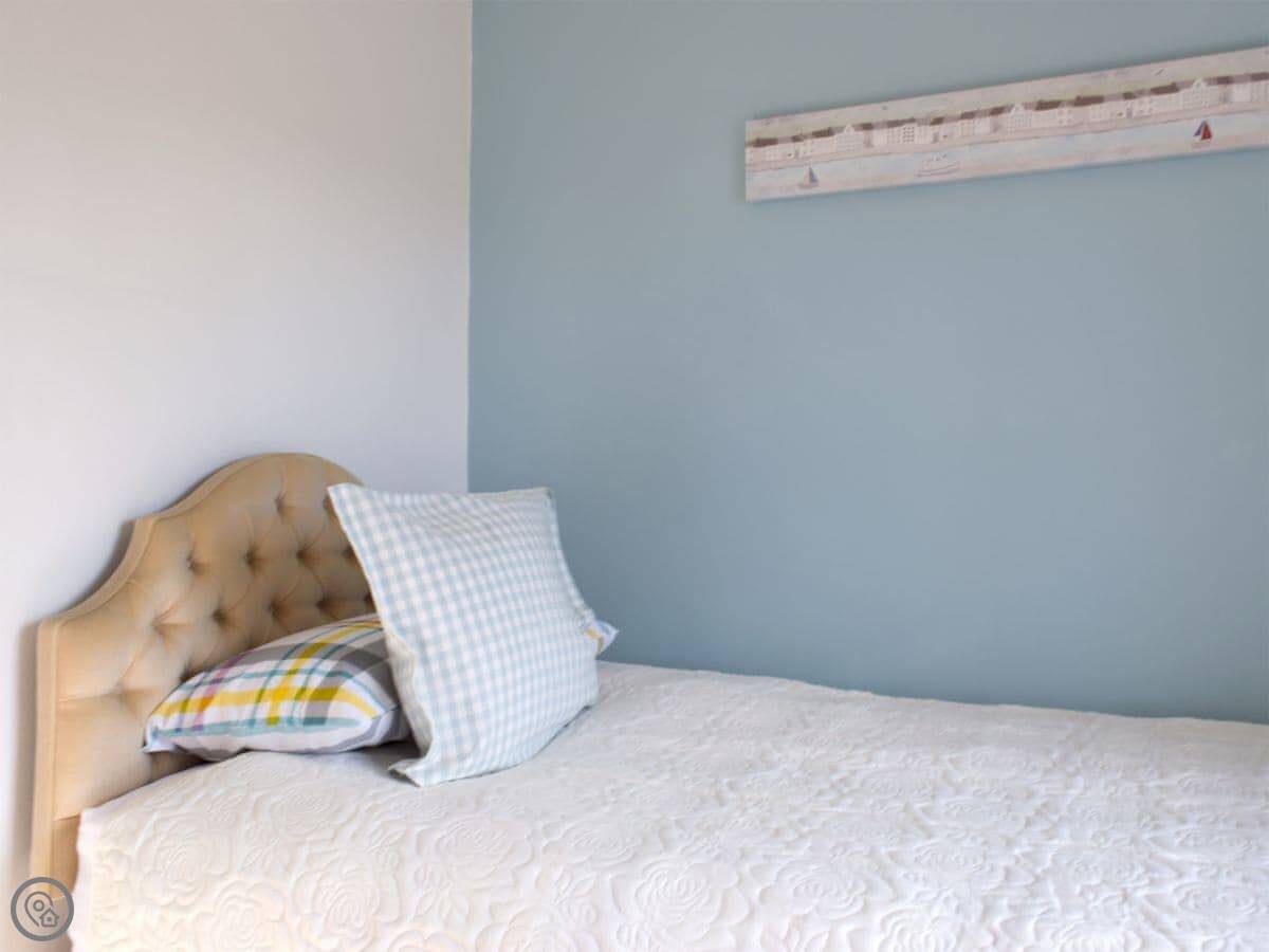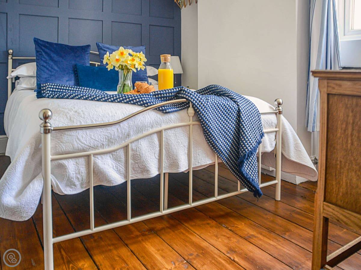 It sleeps six. Three bedrooms, one bathroom. It's got a 4 Star rating. The place was done up a few years back. There are original floorboards and fireplaces, so it feels like an old cottage. The stairs are standard for a house this age, so a bit steeper than a modern one.