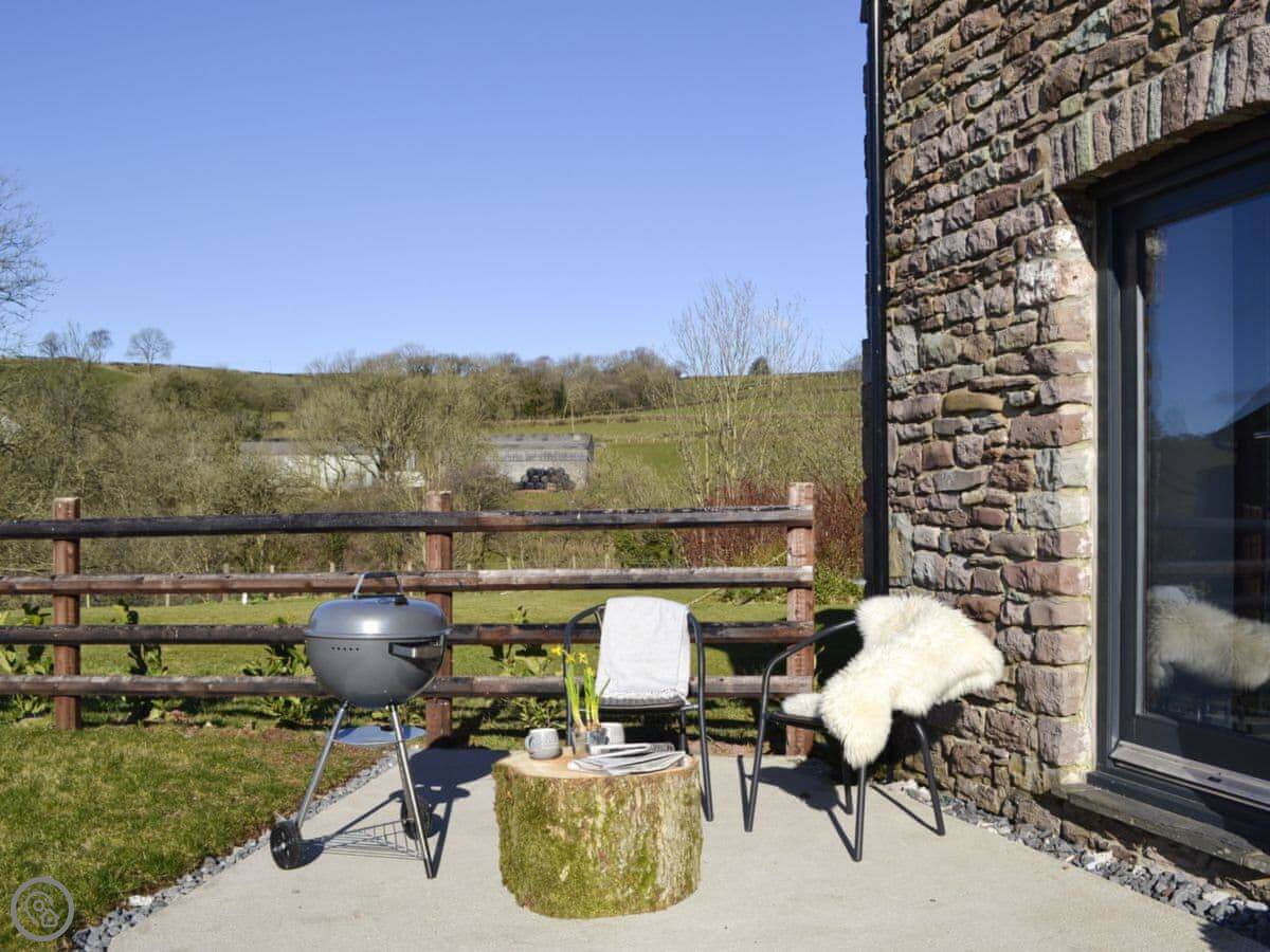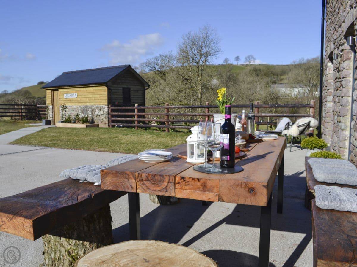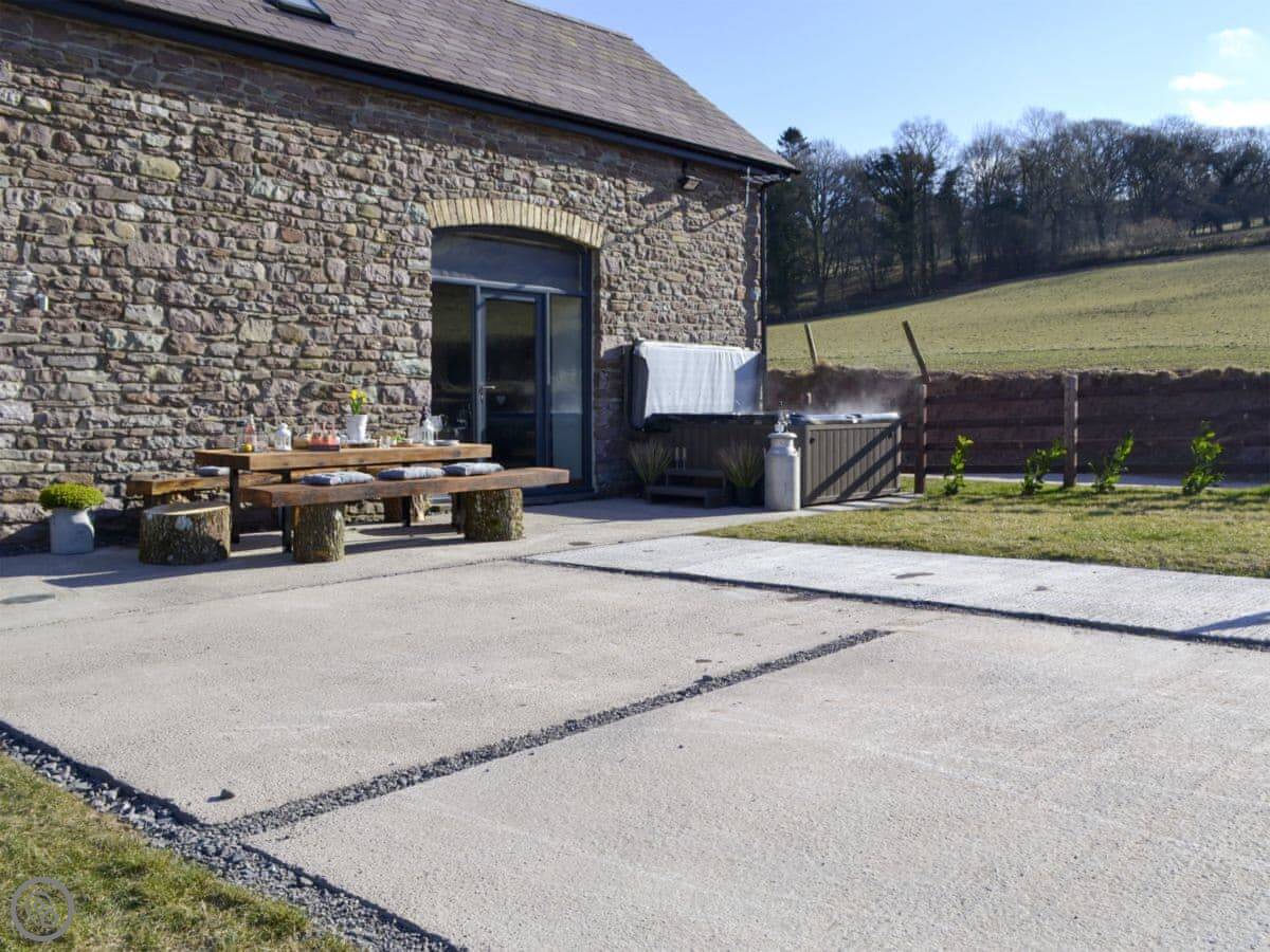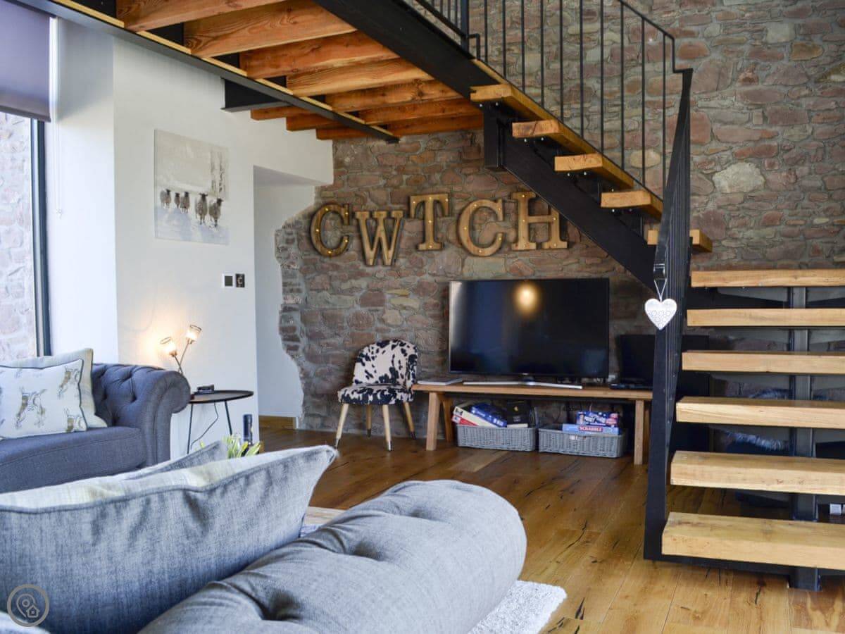 Maes Merlin is in Twynllanan, near Llandovery in Carmarthenshire. It's a converted barn, so it's detached and quite private. The back garden is fully enclosed and looks out over the fields.