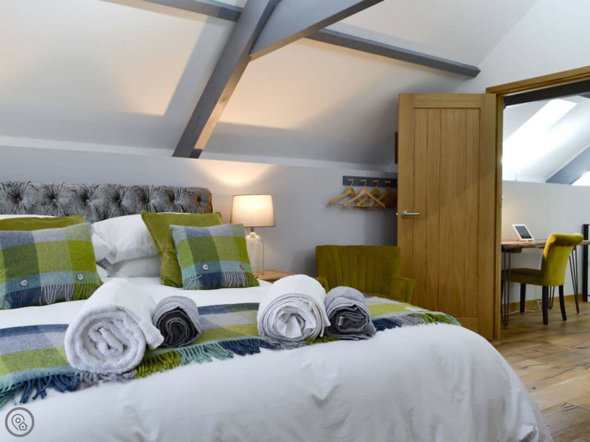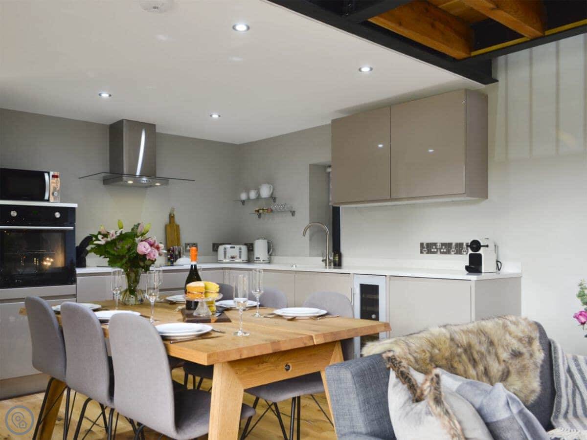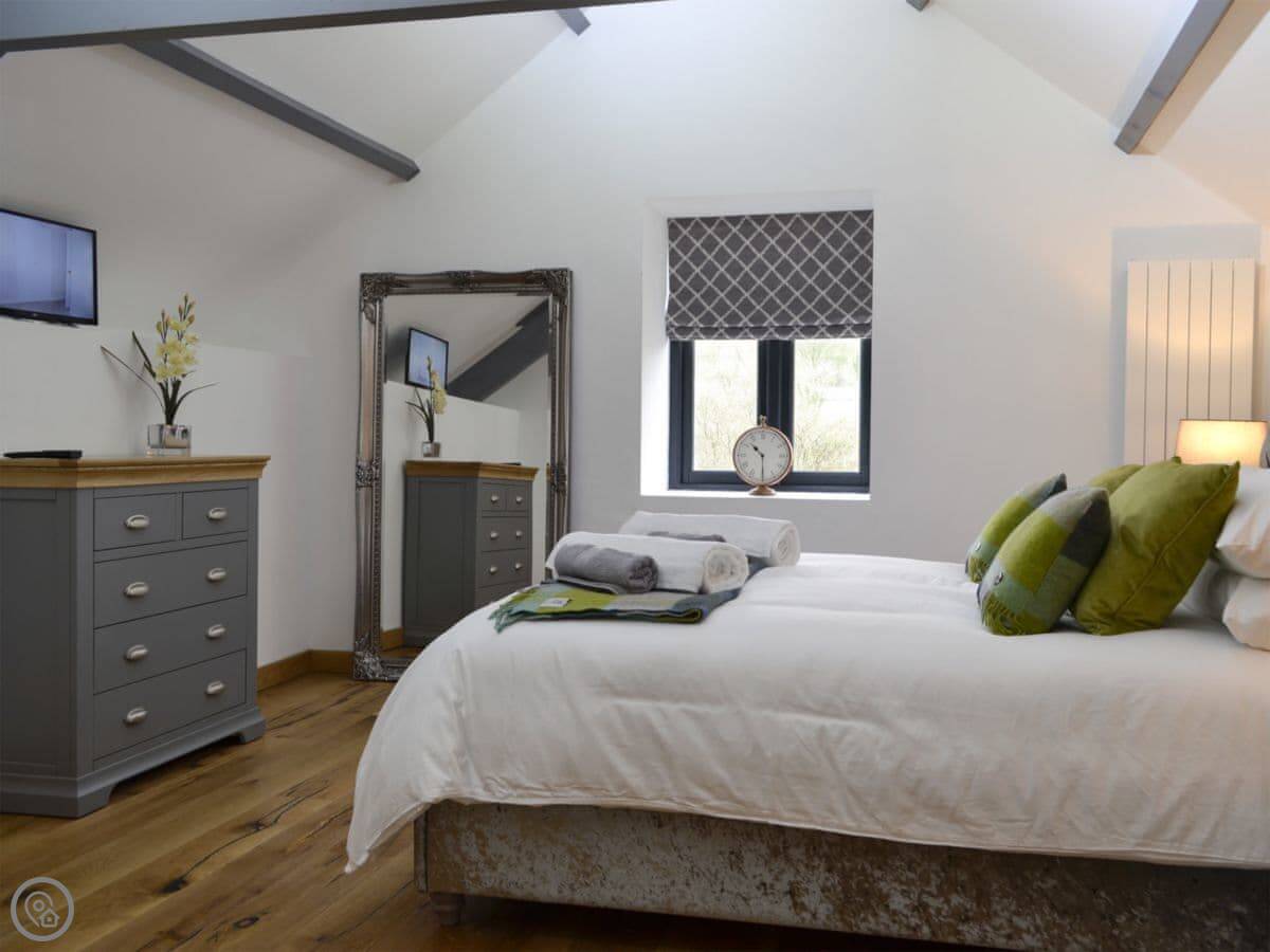 It sleeps six people. There are three bedrooms and three bathrooms, which is useful. One bathroom is a ground floor wet room. It's a 5 Star place, which means it's been done to a high spec. It feels new and clean.