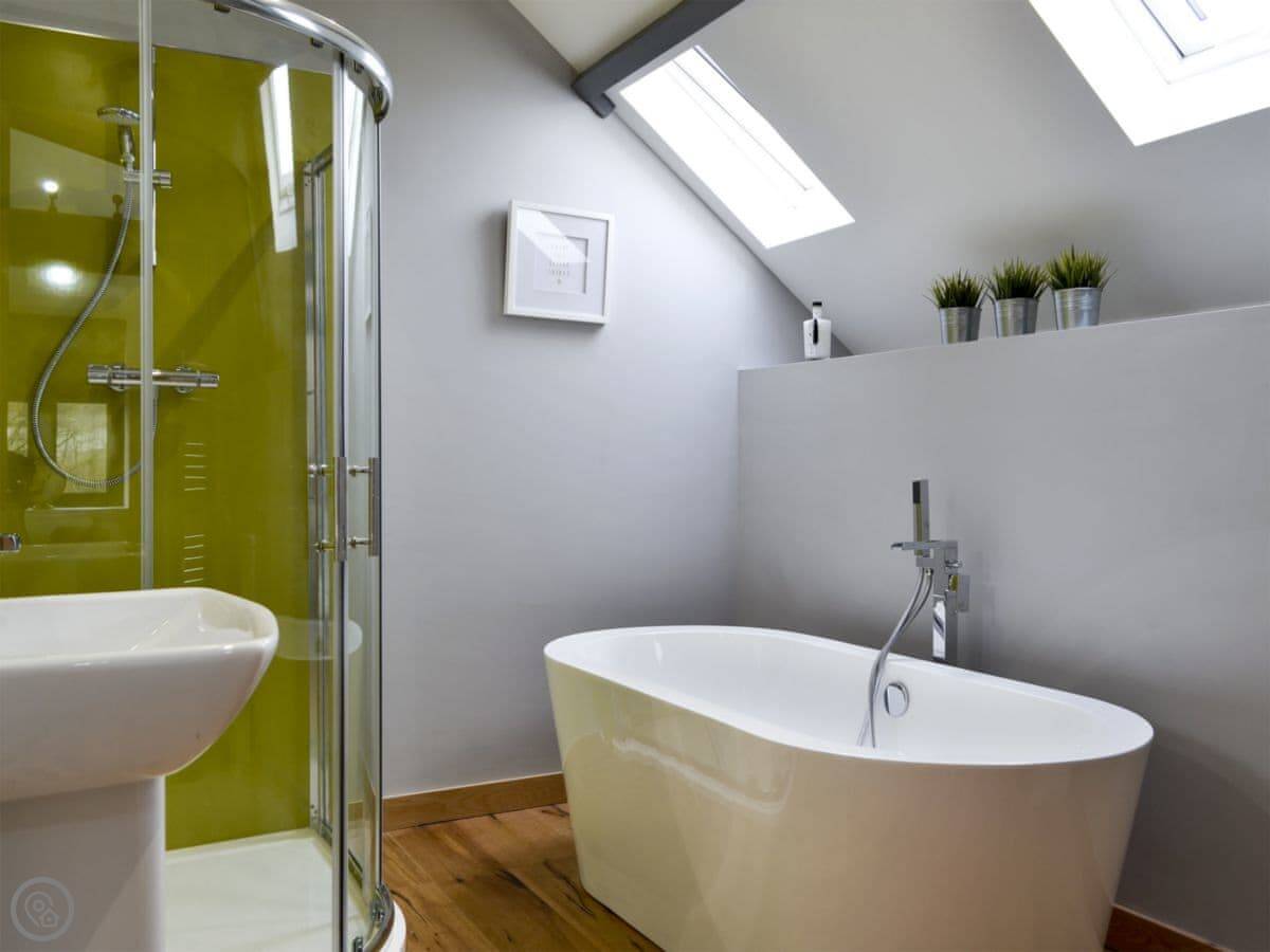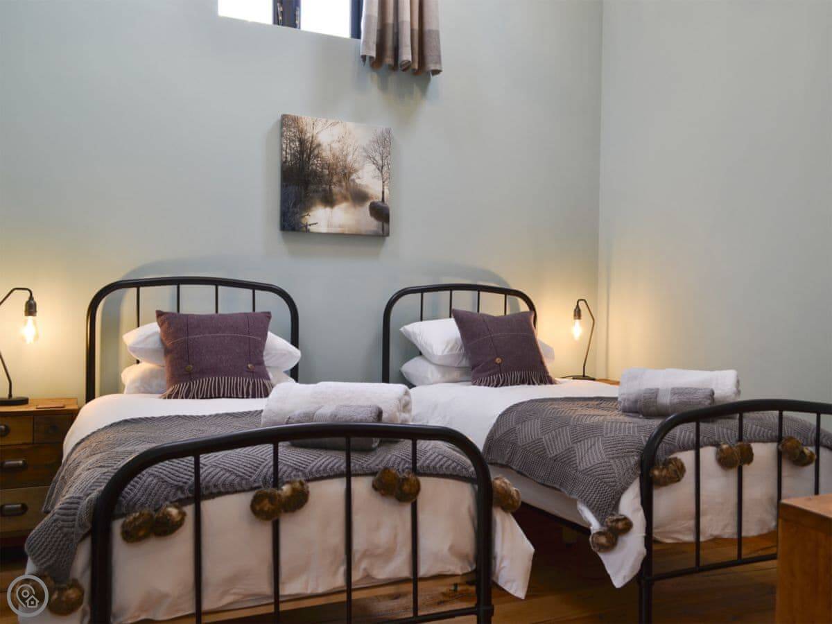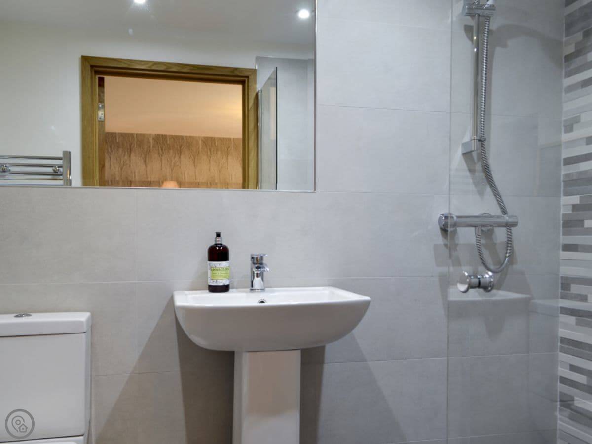 It sleeps six people. There are three bedrooms and three bathrooms, which is useful. One bathroom is a ground floor wet room. It's a 5 Star place, which means it's been done to a high spec. It feels new and clean.