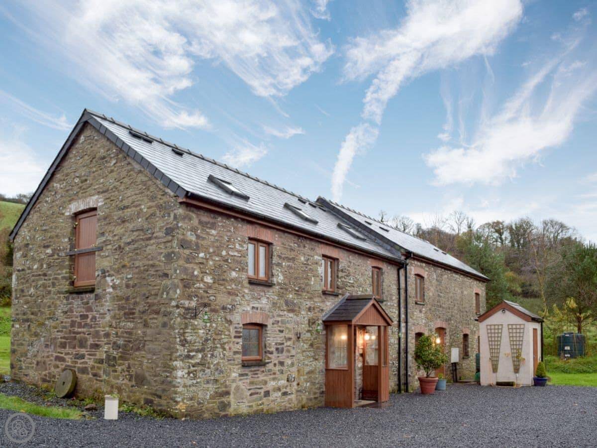 The Granary is one of two cottages here at Pendegy Mill, near Llanybri. It's us next door, then Mill Cottage, then yours. We're in a bit of a dip with trees around, so it's sheltered. You share the big garden with the other cottage if it's occupied.