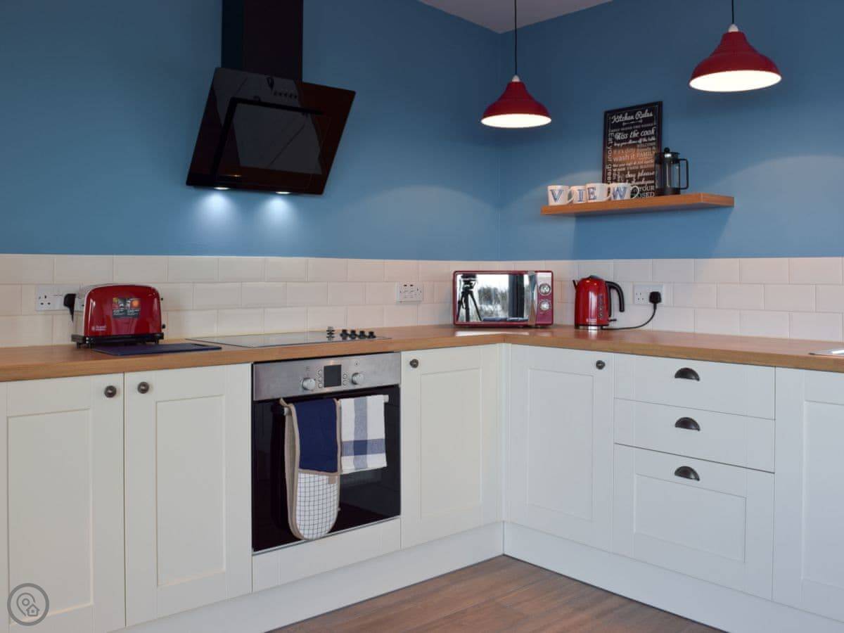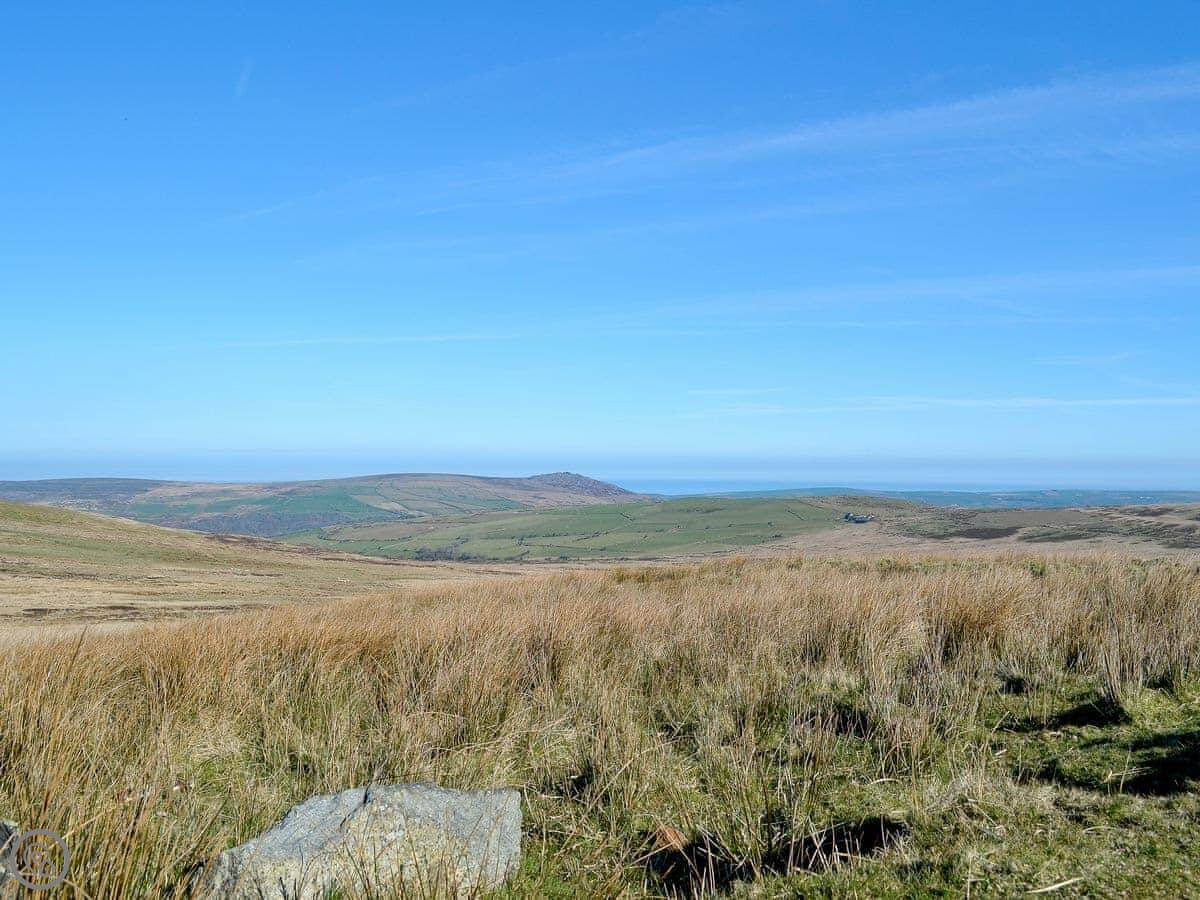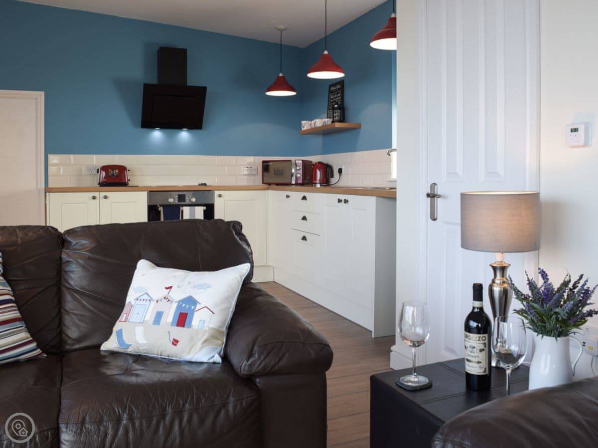 The main thing is the view. The whole front of the living area is glass, looking straight out over Fishguard Bay. You can see Dinas Head and, on a very clear day, Snowdon in the distance. The cottage is up on the hill, so the view is completely open.