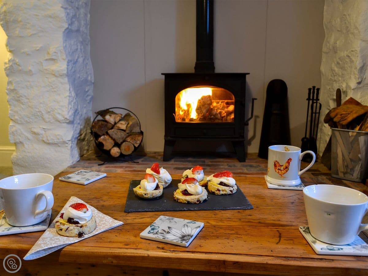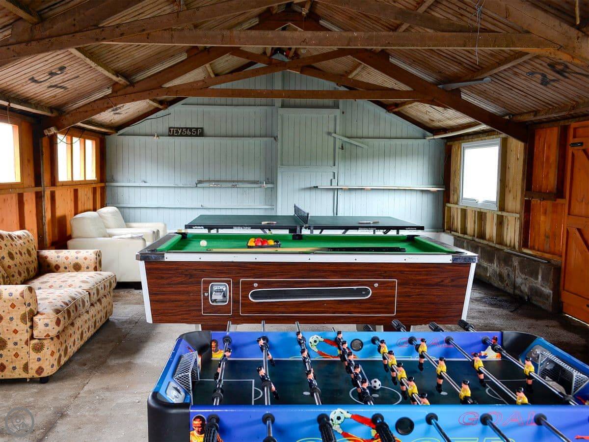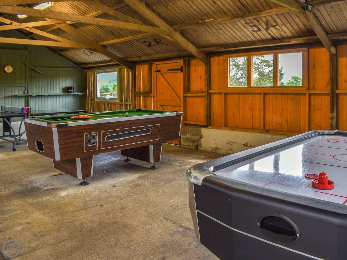 Inside, there's a woodburning stove for cooler evenings, a dishwasher, and a washing machine. There's a games room too, with a pool table. The WiFi works. We provide bedding and towels. There's a cot and a highchair if you need them.
