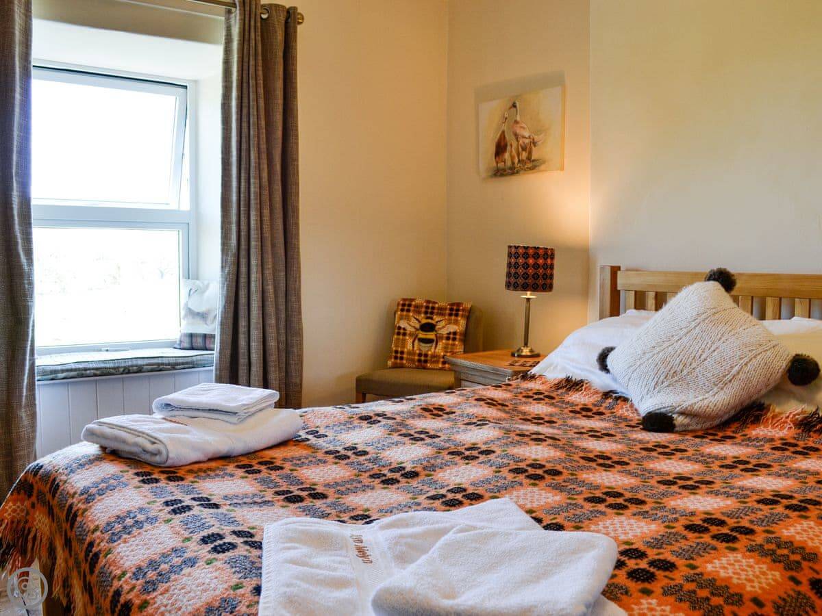 Bryn Melyn is a detached farmhouse near a hamlet called Rhyd uchaf, a couple of miles outside Bala. It's in Snowdonia National Park, so the views are mostly fields and hills.