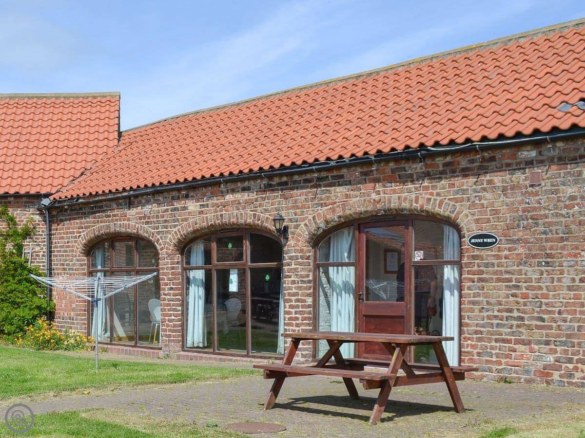 Jenny Wren is on a country lane just outside Flamborough village. It’s one of a few converted farm buildings. You get your own bit of garden with a table and a barbecue.