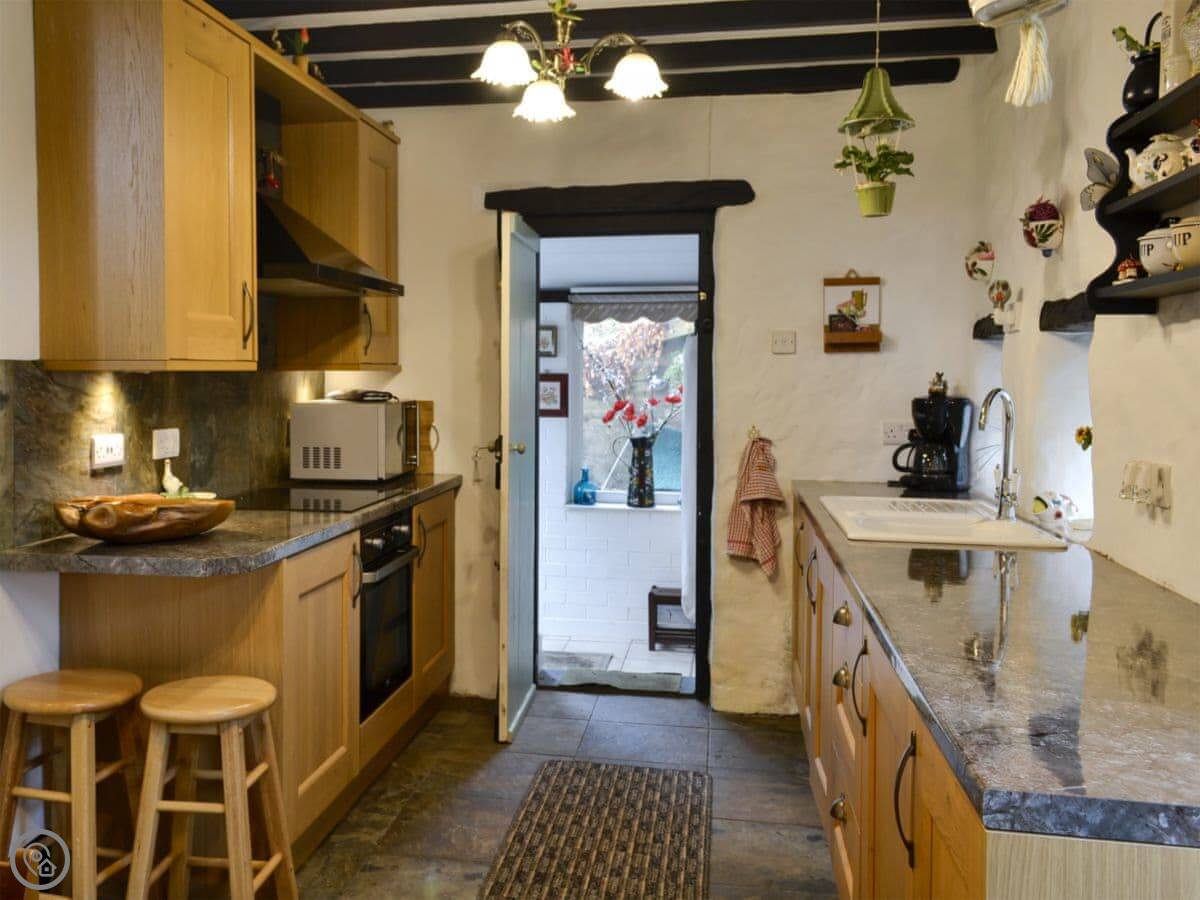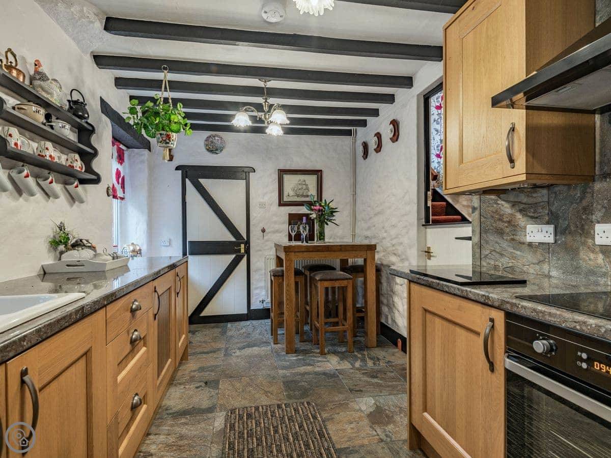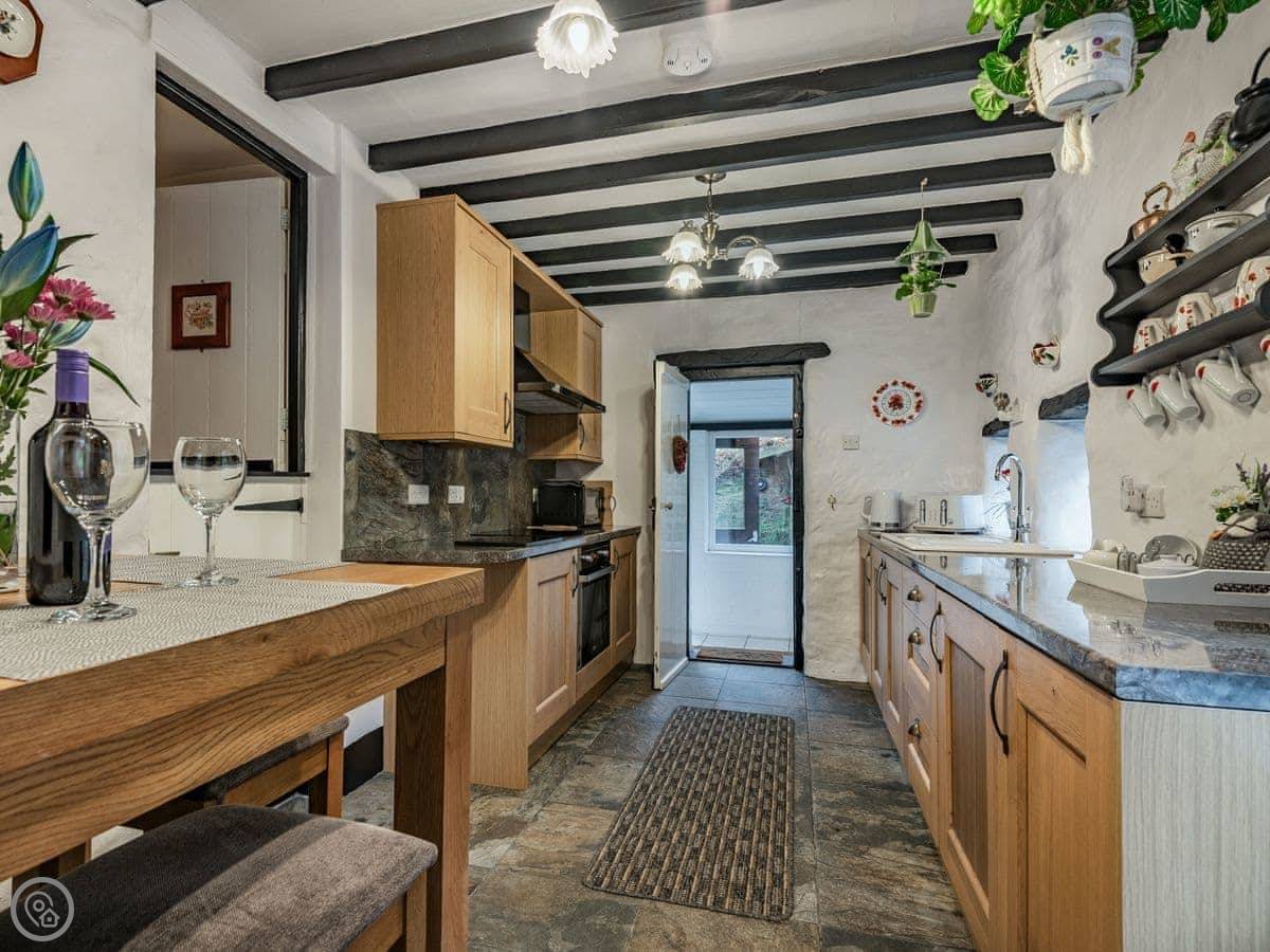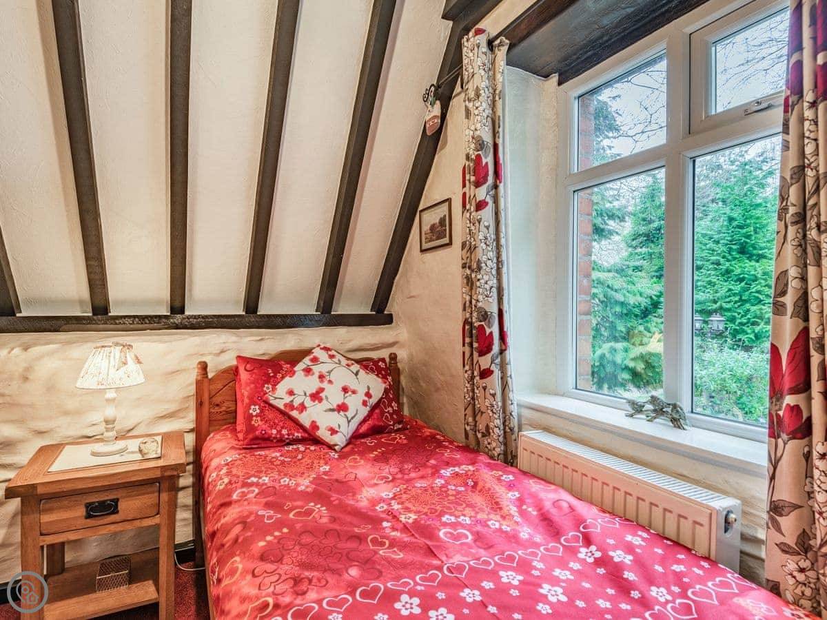 This delightful little holiday cottage is situated on the outskirts of the small town of Corwen, in the Dee Valley. Conveniently located next to the A5 road, it is warm and fully double glazed throughout. There’s a pretty cottage garden with ponds and seating areas – perfect for dining alfresco. There’s a lovely kitchen/dining room and a cosy living room with a wood burner – ideal for relaxing with a glass or two of wine. From the living room, you can look across the fields to the steam trains on the Llangollen Railway as they reach the station in Corwen which is within walking distance. You can hop on the train for a nostalgic journey through Carrog, Glyndyfrdwy and Berwyn to Llangollen, home of the annual International Musical Eisteddfod. You can also take a relaxing journey on a horse drawn boat on the Llangollen Canal. Fishing licences are available locally, and just to the west of Corwen is the award-winning Rhug Farm Shop – try their bison burgers or stock up on some Welsh delicacies! Those with an interest in history will enjoy visiting the little Cadw properties of Rug Chapel and Llangar Church, whilst the National Trust properties at Erddig and Chirk Castle are both within easy reach. The town of Bala is close by and features Wales’ largest natural lake, whilst Betws-y-Coed, Gateway to the Snowdonia National Park is also within easy reach. Beach 31 miles. Shop, pub and restaurant ¼ mile.